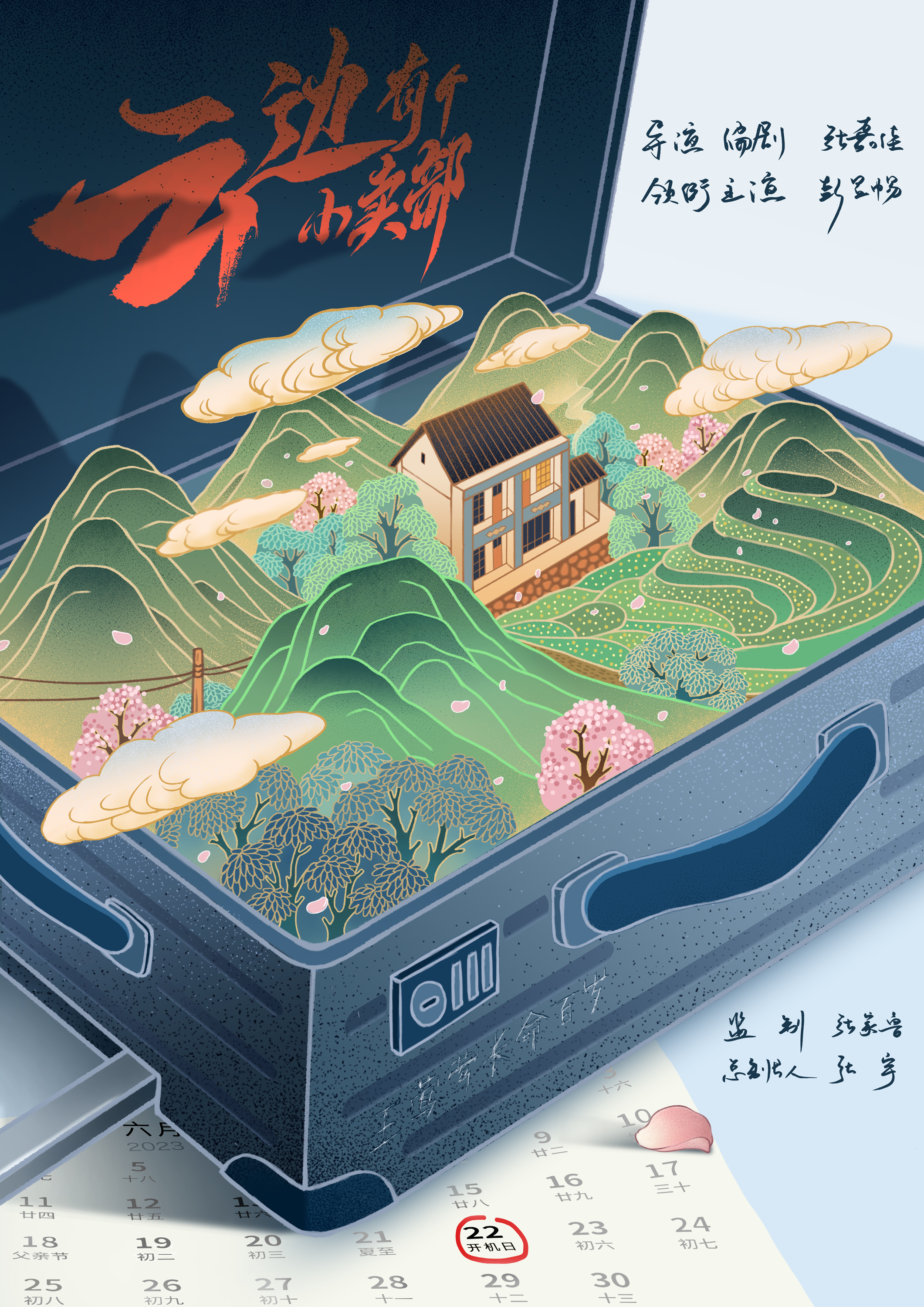 在开机海报中,游子的行囊打开,行李箱中装的是云雾缭绕下宛如桃源的云边镇,还有刘十三心底的梦归之所——外婆王莺莺的小卖部。在行李箱的侧面,一笔一划地刻着书中刘十三的一句梦呓:“王莺莺长命百岁。”在书粉的分享中,“王莺莺小气鬼”和“王莺莺长命百岁”时常出现在一起。前者是刘十三少时的气话,后者是刘十三一生的祈愿。在《云边有个小卖部》里,现实的残酷和美好时常交错,最终汇聚成一首治愈心灵的田园牧歌。