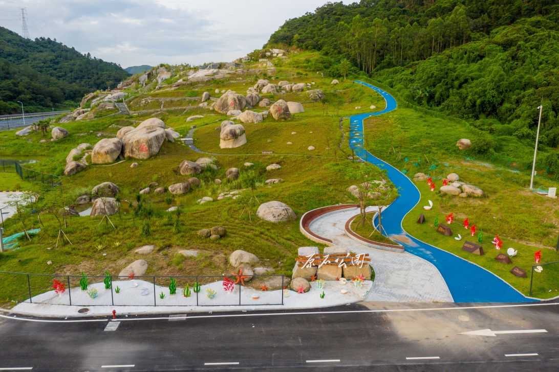 该公园就地取材,在完善边坡防护的同时,将附近原石和建设废料利用起来,依照原有地貌改建而成,既最大程度保留原生态地貌,又大幅减少了在建设过程中产生的弃方,实现了对环境的有效保护。