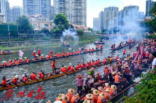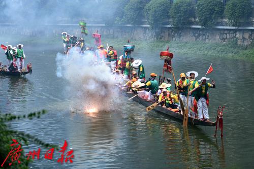 数十条龙舟前来冼村应景。