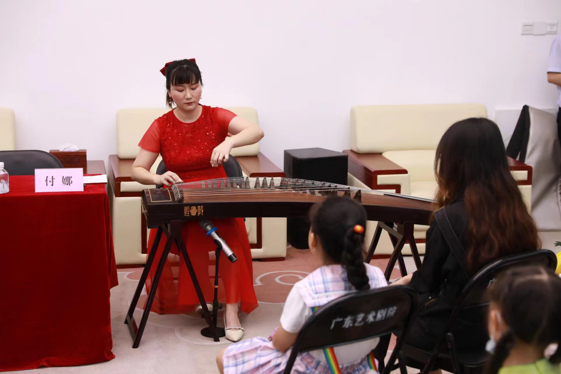贵宾厅内,广东民族乐团古筝演奏家、国家一级演奏员付娜结合《大鱼海棠》《渔光曲》《青花瓷》等耳熟能详的曲目,进行古筝简单配乐分析,筝音袅袅,拨动了年轻人渴望传承弘扬国潮民乐的心。