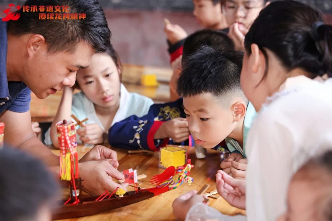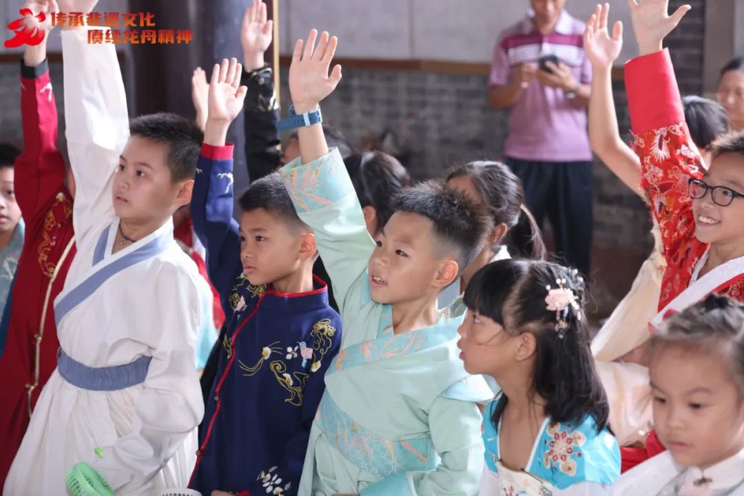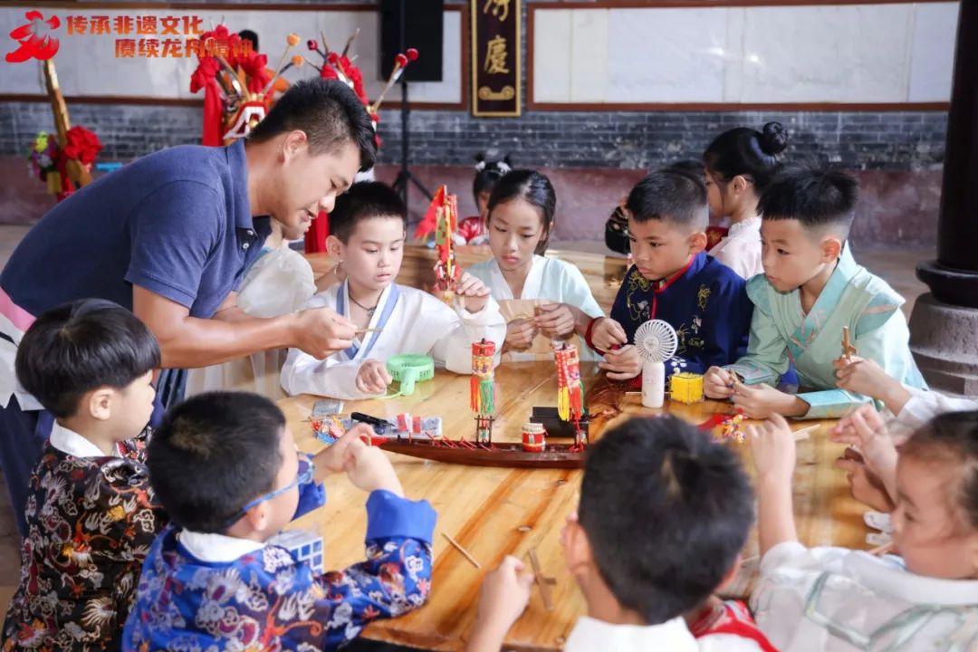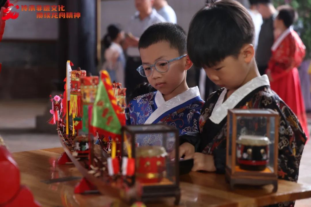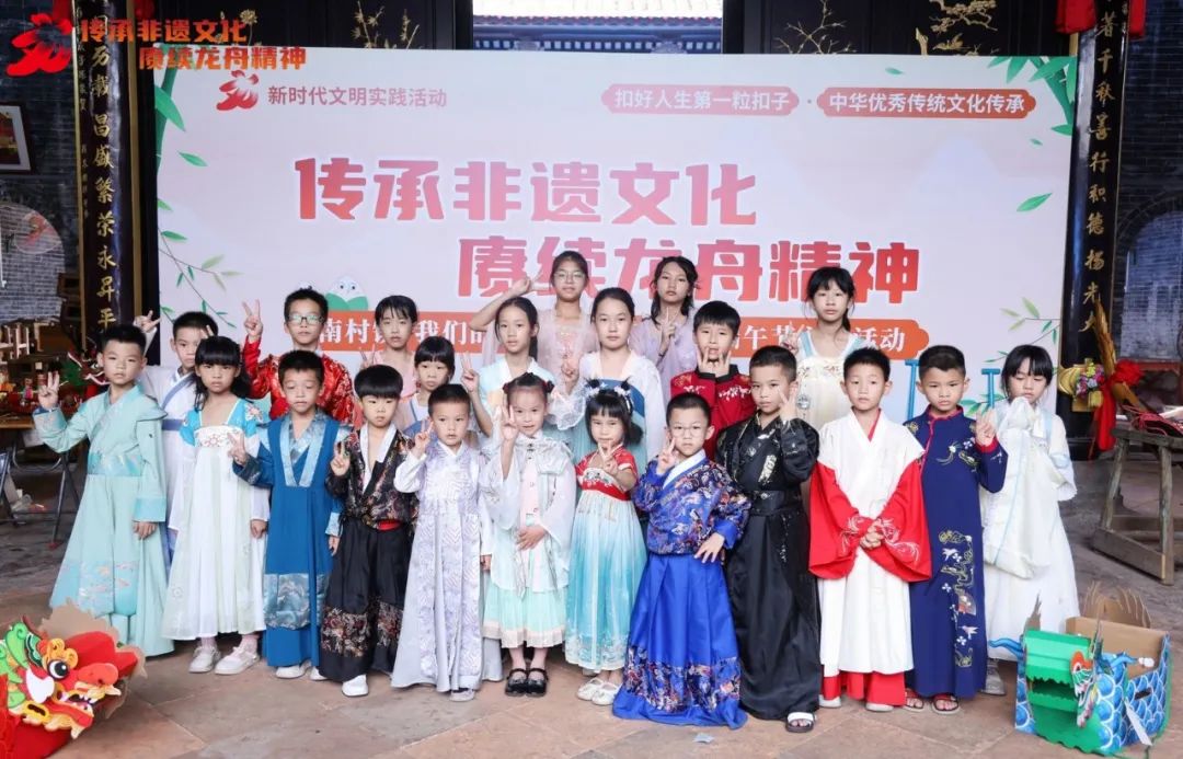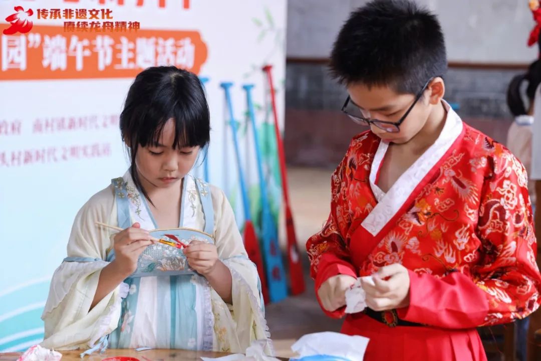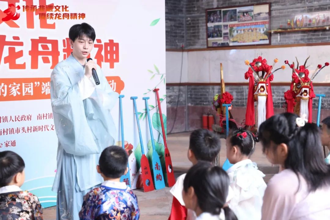 在历史悠久的蒋氏宗祠里,身着古装的小朋友们和“屈原”进行了一场穿越时空的对话。现场,老师和学生们通过“听一场端午龙舟的古往今来”“动手做一支龙舟模型”“来一场酣畅淋漓的旱地龙舟赛”“尝一尝南村龙舟的龙船饼”“闻一闻端午艾香”五场活动,度过了一个难忘的端午。本次活动由南村镇党委、南村镇人民政府、南村镇新时代文明实践所主办,南村镇宣传办、南村镇市头村新时代文明实践站协办,信息时报微社区e家通承办。