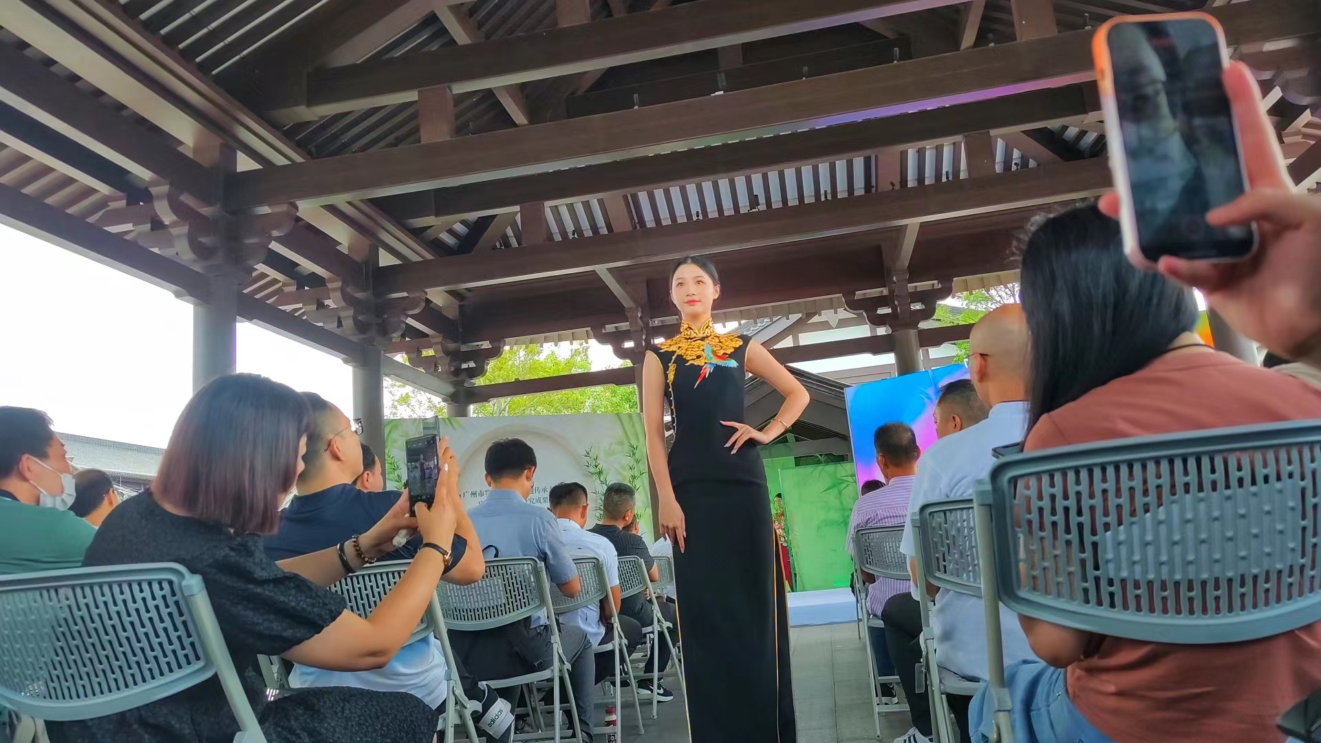 活动现场,一场融合“非遗+时尚”的跨界走秀为现场观众带来震撼的感官盛宴。模特从翠绿竹纱走廊步向舞台,将非遗艺术时尚千山万水展现在观众眼前,既彰显了非遗的独特魅力,也展现出非遗与潮流相互赋能的新活力。