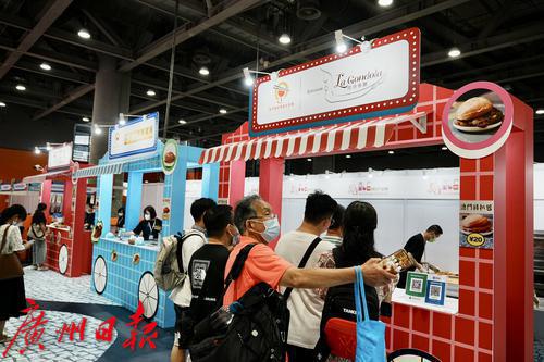 「我要一個雞扒包和兩個豬扒包!」「給我拿一份剛出爐的葡撻!」6月22日午間,在「2023澳門·廣州繽紛產品展」的澳門特色美食區上排起了隊。曾被聯合國教科文組織授予「美食之都」的澳門,每年都吸引着各地遊客前來品嘗特色美食。來到這場穗澳兩地盛會,怎能不體驗最地道的澳門特色美食?現場,澳門餐飲業聯合商會常務理事陳冬雪告訴記者,今年底他們將在澳門組織大型的戶外美食展,屆時將帶來更多各具特色的風味美食,歡迎大灣區朋友前來體驗「打卡」。