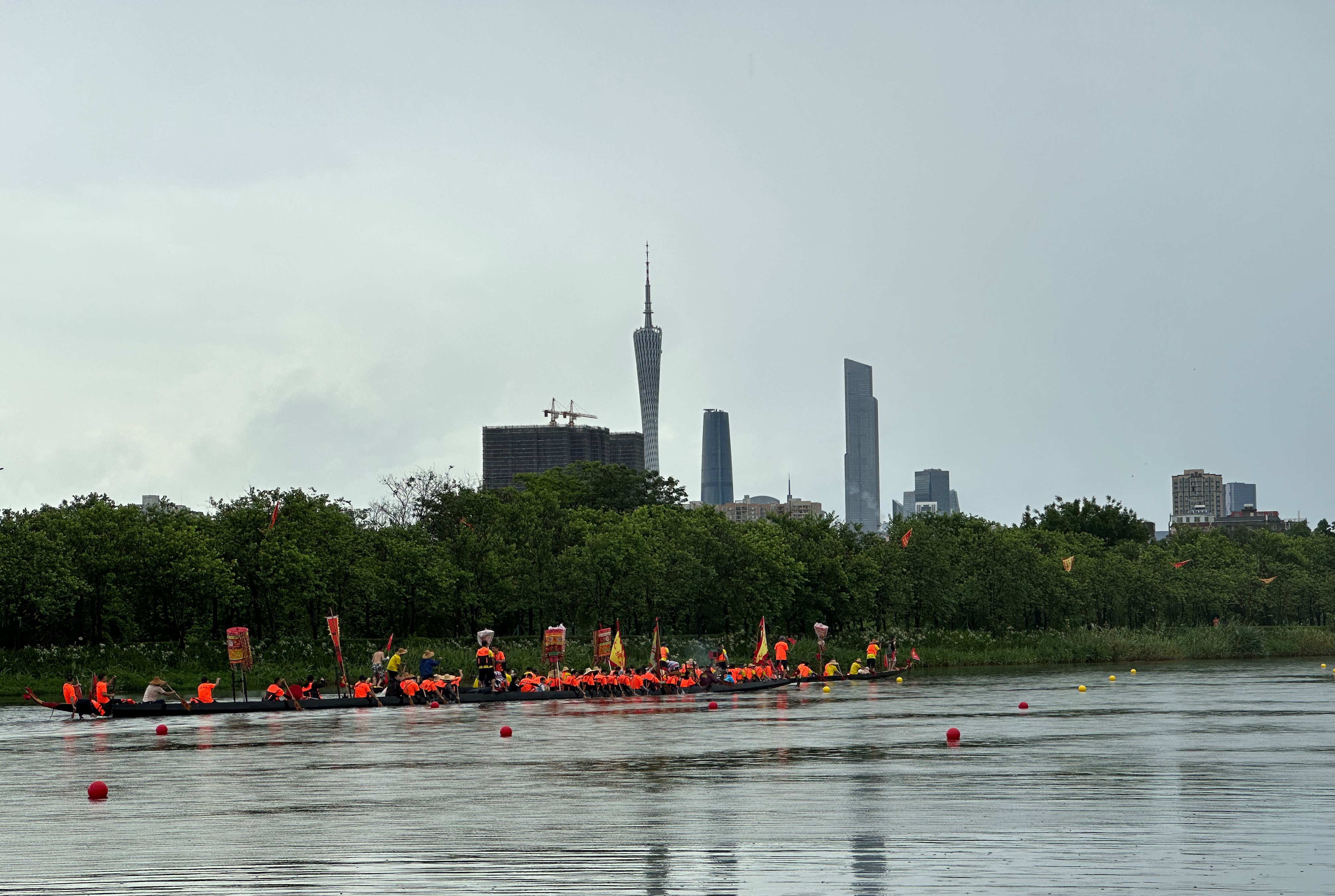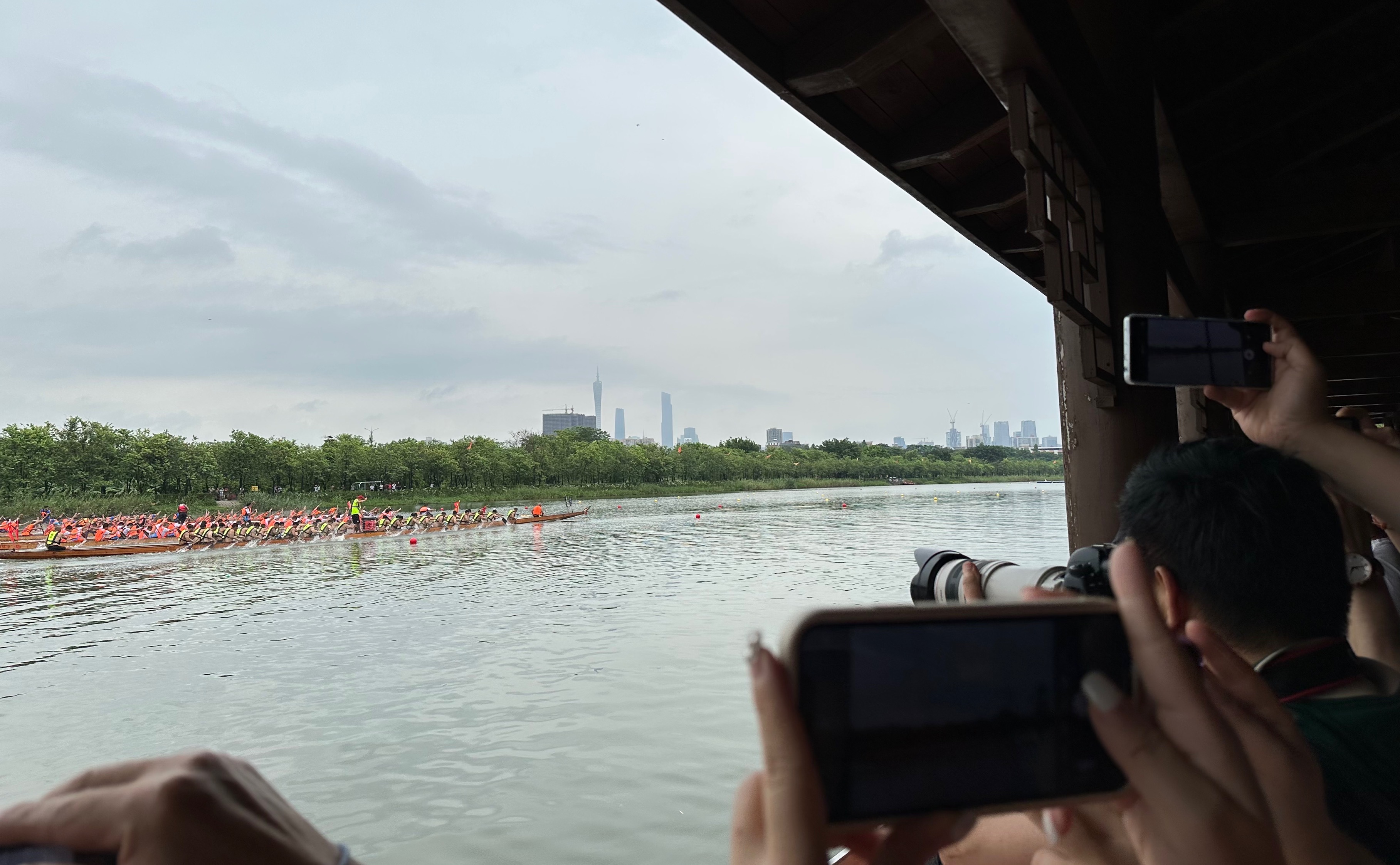 6月24日上午,广州海珠湿地龙舟赛开赛,20多条龙舟在海珠湿地石榴岗河上展开飞龙竞速。在海珠湿地二期爱莲亭附近,沿着约300余米的比赛河道挤满了前来观赛的市民游客。记者在现场了解到,40人传统龙组和22人公开组比赛冠军分别为西滘青年队和大塘五甲龙船会。