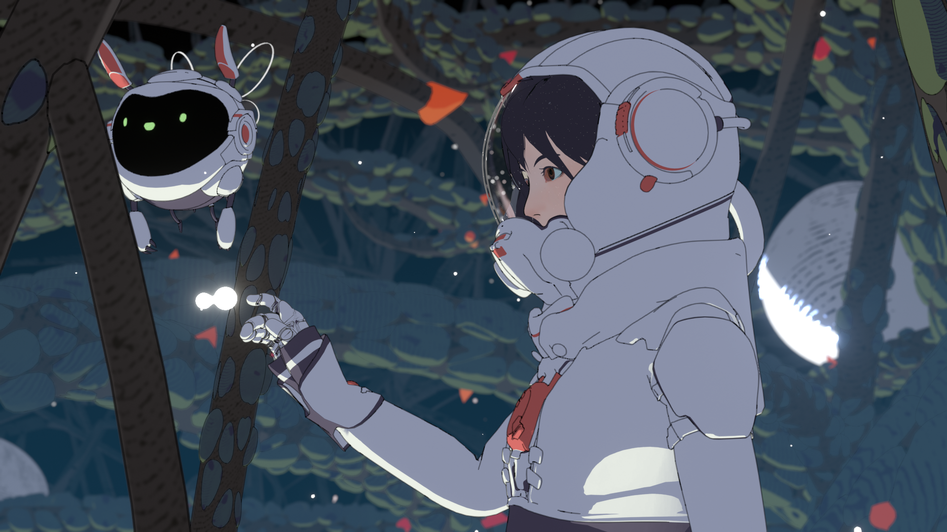 如何在宇宙的浪漫遐想中,探索人与自然神秘又深刻的联系?广美绘画艺术学院的毕业生尹嘉琳的动画作品《循星》提供了一个瑰丽又奇幻的视角。故事在一个星系中的两颗星球之间展开,一名叫“卡西尼”的旅行者和她的机器人“惠更斯”踏上了一段不同寻常的太空漫游之旅,恢宏宇宙中的景象和遗迹,充满未知的冒险元素,在这趟旅程中渐次展开。
