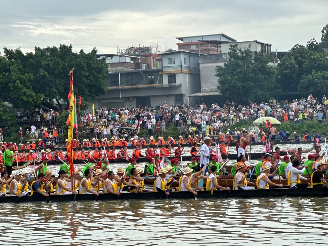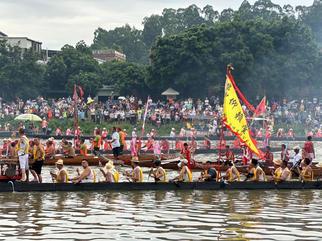 记者了解到,今年,两个龙船会共有约60条龙舟一起“趁景”。河涌边锣鼓声声,络绎不绝的“飞龙”踏着鼓点纷至沓来,岸边聚满了前来“趁景”睇龙船的市民,场面十分震撼。