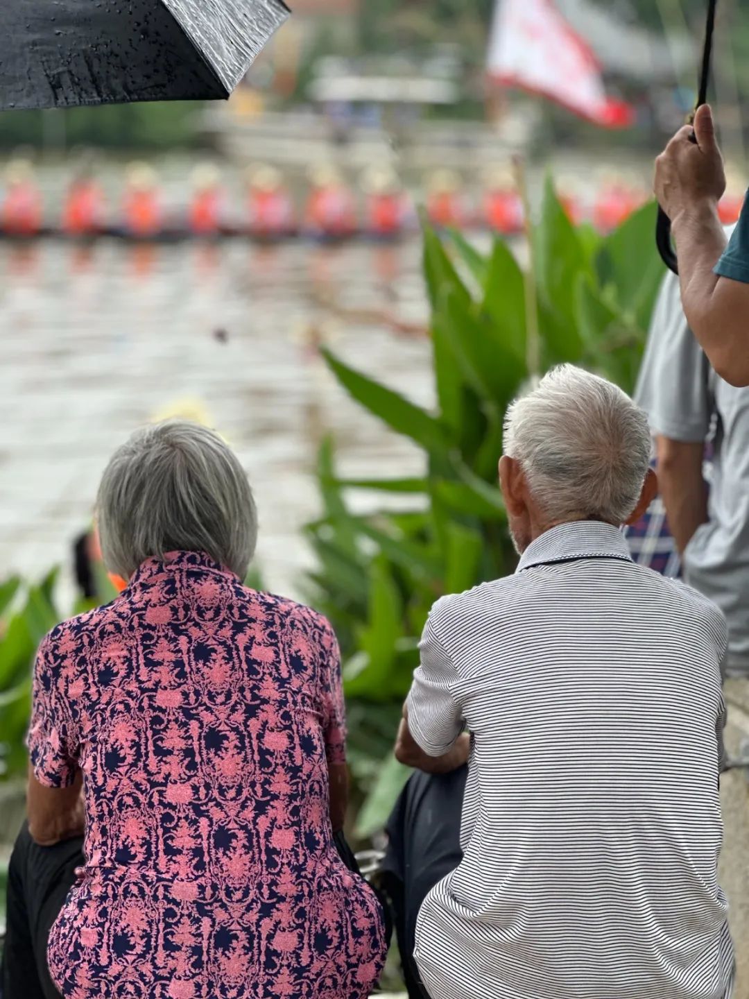 在龙舟景期间,虽然有“龙舟水”骤来,但是也没有阻挡“扒仔”和市民的热情。只见围观群众撑伞看龙舟,别有一番滋味。
