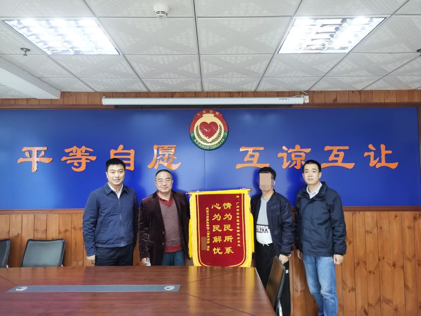 接到申请后,京溪街道党工委当即成立了由京溪派出所、京溪司法所、京溪街综治办及京溪街京海社区居委会多方组成的“网格民声直通车”专门调解小组,立刻开展调解。短短数日,京溪街调解小组就为各方明确了责任区分,提出了建议赔偿份额。各方均表示接受街道调解的结果,并立即向柳先生母亲支付了赔偿款。
