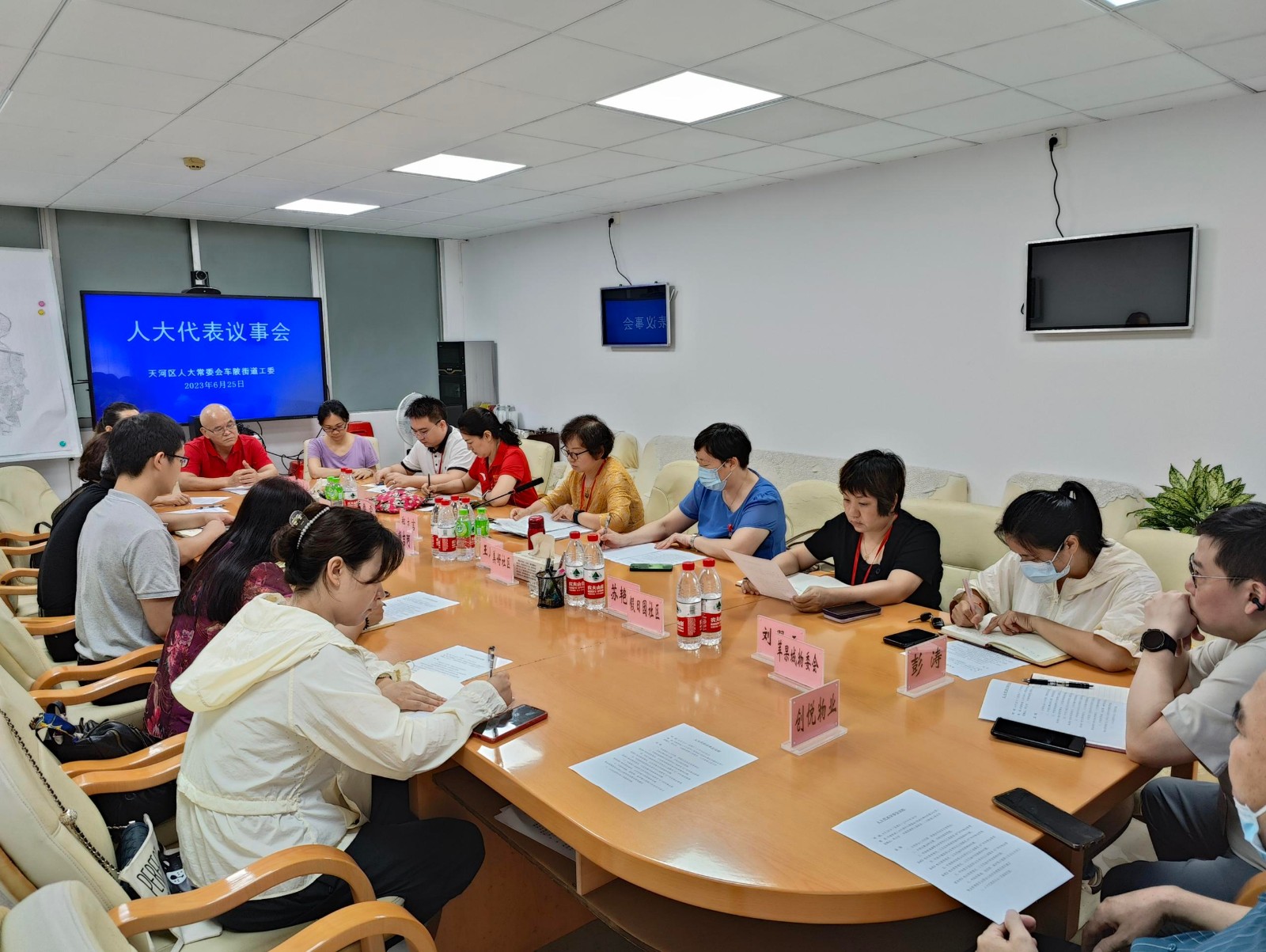 6月25日上午,在车陂街道人大代表中心联络站召开的代表议事活动中,群众及居委会同志对人大工委组织的这次议事会表示肯定。此次议事活动由车陂街道联组市、区人大代表,车陂街道办事处分管领导,城管办、居委会、物管公司负责人,物委会成员,小区业主等多方代表共同参与,主要就《广州市物业管理条例》在基层的实施情况进行座谈交流,重点听取车陂街道办事处及社区居委会落实《广州市物业管理条例》相关职责情况,以及在本街道实施过程中存在的实际困难和问题,并收集辖区业主对成立物业管理委员会等业主组织的意愿及意见建议。