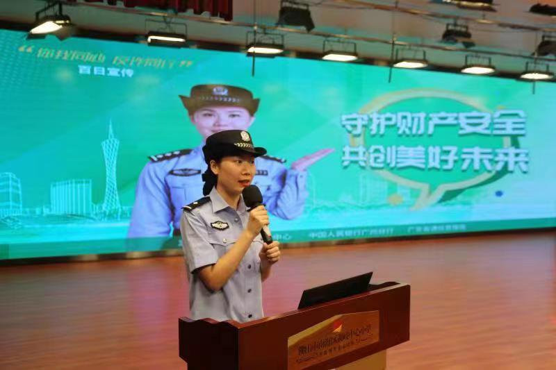 活动现场,反诈宣传民警通过讲解近期游戏交易诈骗、冒充熟人诈骗等与学生息息相关的电诈案例,揭示犯罪分子的诈骗手段和防范技巧,提醒学生们面对可疑人员和信息时,应该理性分析,避免上当受骗。