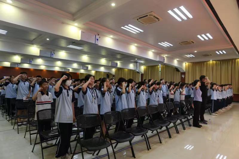 “珍爱生命,远离毒品,坚决与毒品毒魔作斗争!”参观完毕后,全场师生高举右拳,进行庄严宣誓,铮铮誓言传达了同学们拒毒、防毒的决心。