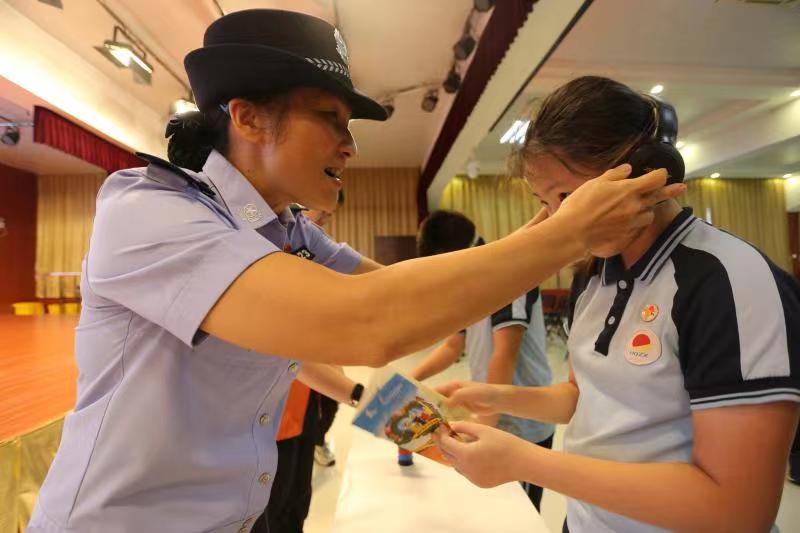 除现场宣讲外,民警还联合启明星禁毒社工,通过播放警示音视频、设置宣传展架、发放普法资料等多种形式对法制知识进行全方位宣传,并动员学生们成为“小教员”,进一步扩大普法宣传阵线。