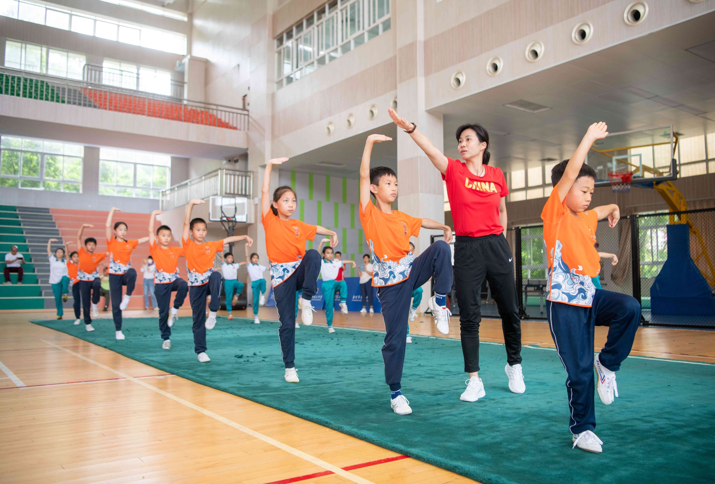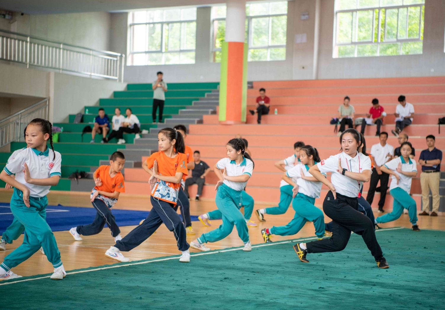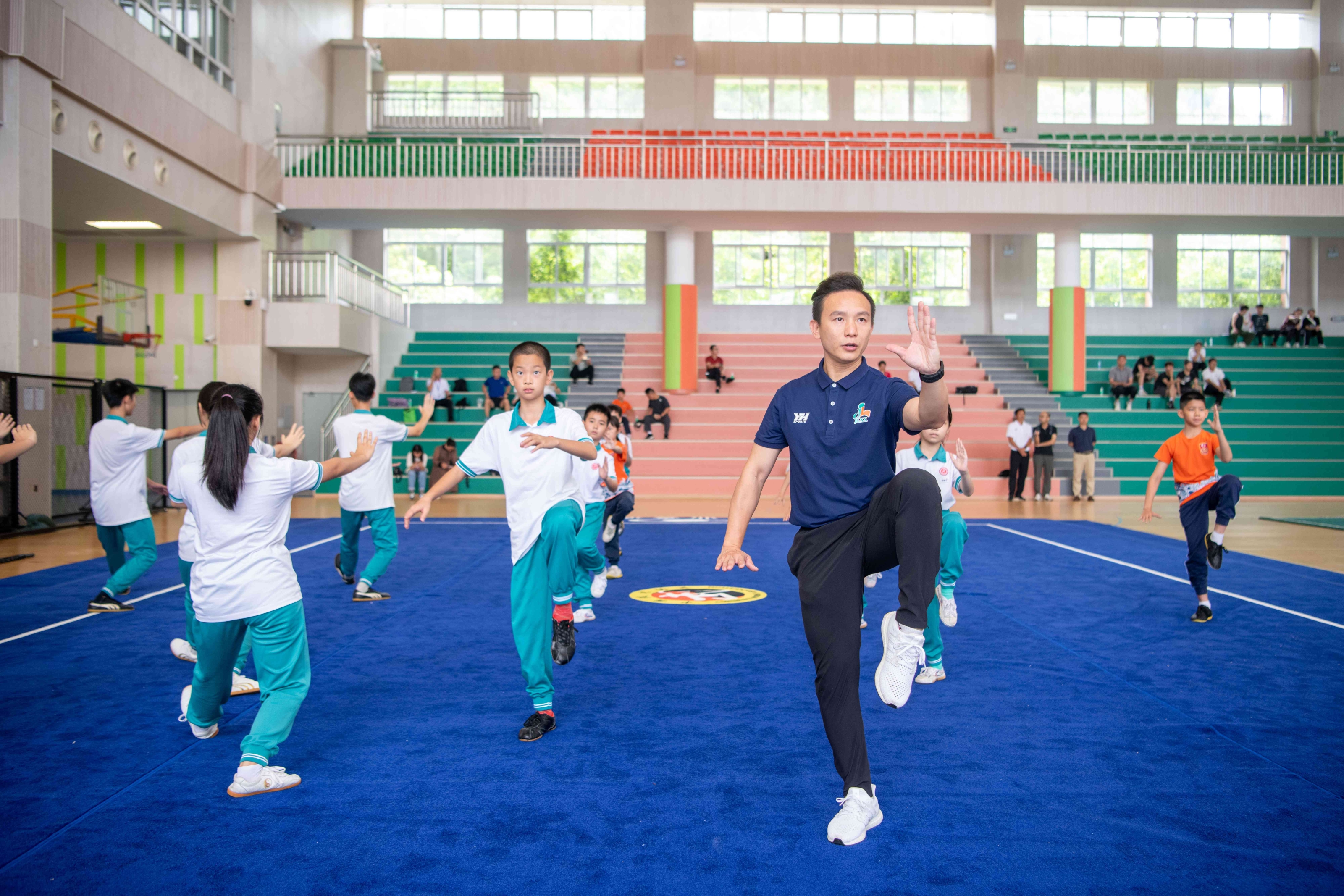 此次活动中,广州市第二中学陈宝璇老师、广州市越秀区建设六马路小学林曦老师和广州市黄埔区会元学校张润琦老师,带领来自这3所学校的学生进行训练课展示,向现场师生展示了武术项目中3种不同步形的训练方法。