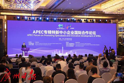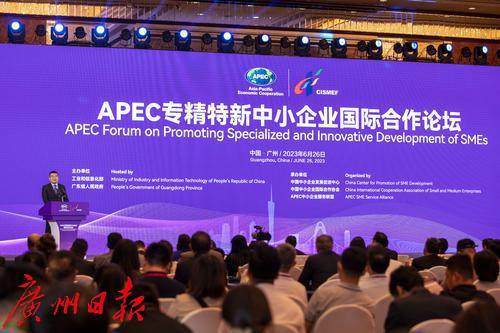 2023年6月26日上午,第十八届中国国际中小企业博览会、第二届中小企业国际合作高峰论坛平行论坛:2023年亚太经合组织专精特新中小企业国际合作论坛在广州香格里拉大酒店举行。本次论坛的主题是激活专精特新发展动能,增进亚太人民福祉。论坛将搭建培育优质中小企业交流对话的平台,宣传中国推进高水平对外开放、共商合作的决心,推广中国优化中小企业发展环境、培育优质中小企业的经验,为共促亚太地区中小企业创新和专业化发展贡献中国智慧和力量。
