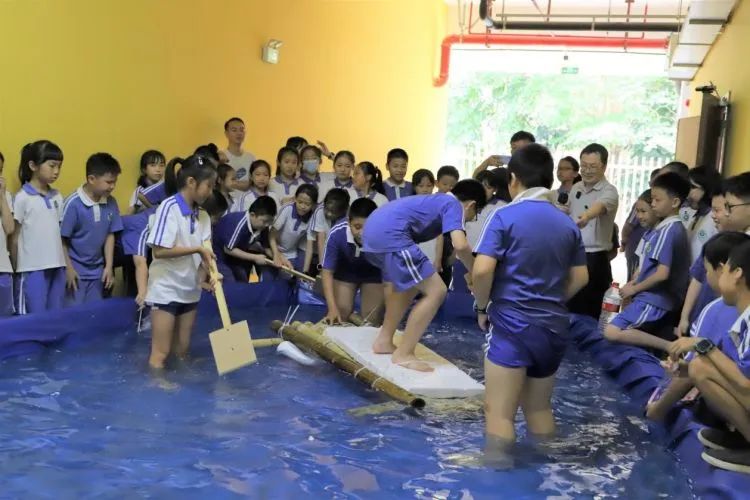 近日,千林山小学的孩子为《鲁滨逊漂流记》中的“鲁滨逊”造了一艘船,并在水上试航。这是该校为期3天的“海洋星球 探险之旅”,也是跨学科融合活动的一部分。