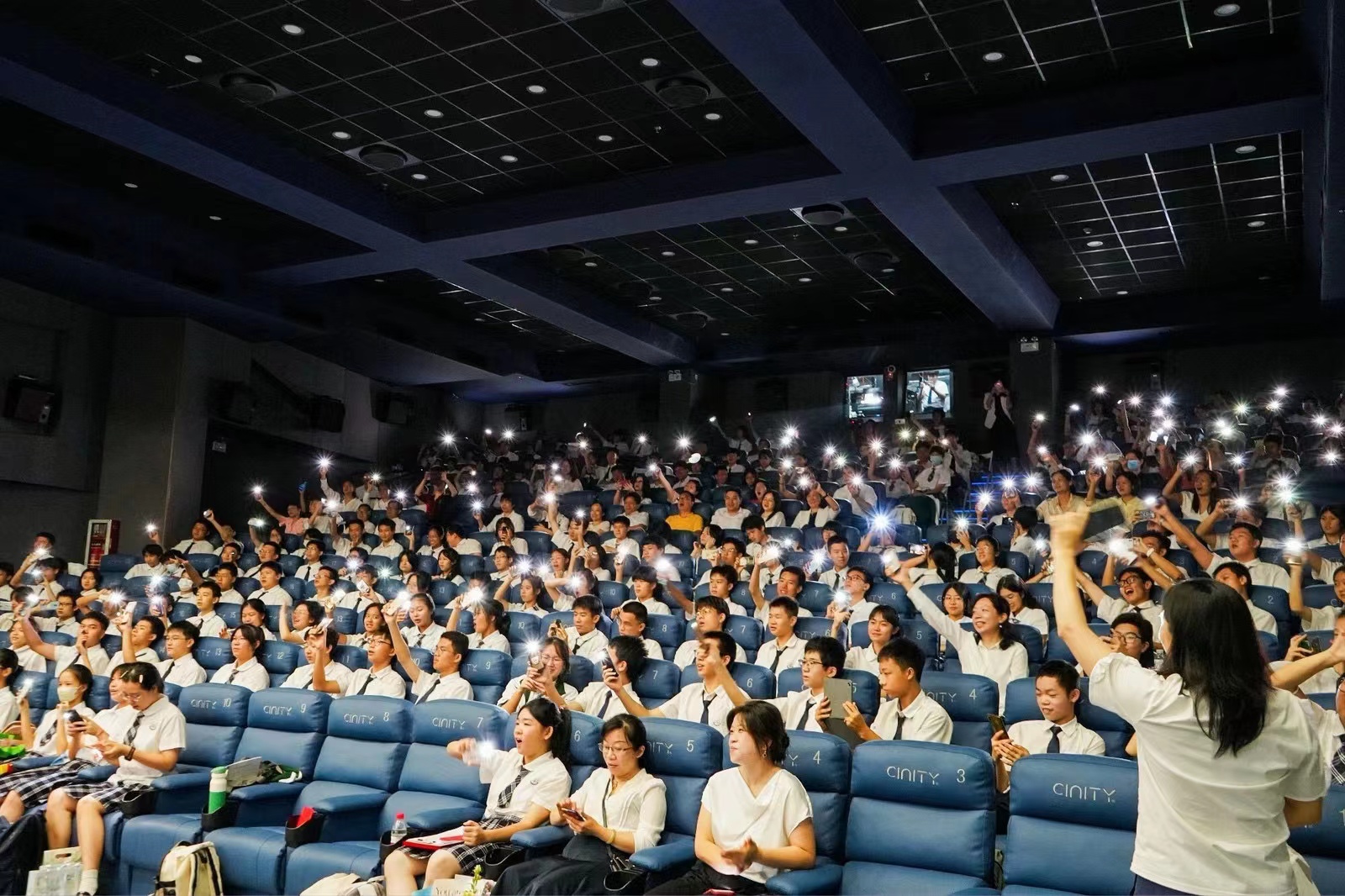 谈到为何选择在电影院为学生们呈现一场有意义的毕业礼?作为本次活动策划、广州市第十七中学德育处主任丁立表示,一是想通过更专业的设备为师生呈现回顾初中三年的生活与学习,更具氛围感;二是选择观看《长空之王》,希望以影片中的故事鼓励孩子们将来面对困难的时候坚持信念勇敢向前。“相信这将是一场非常难忘的师生聚会!”