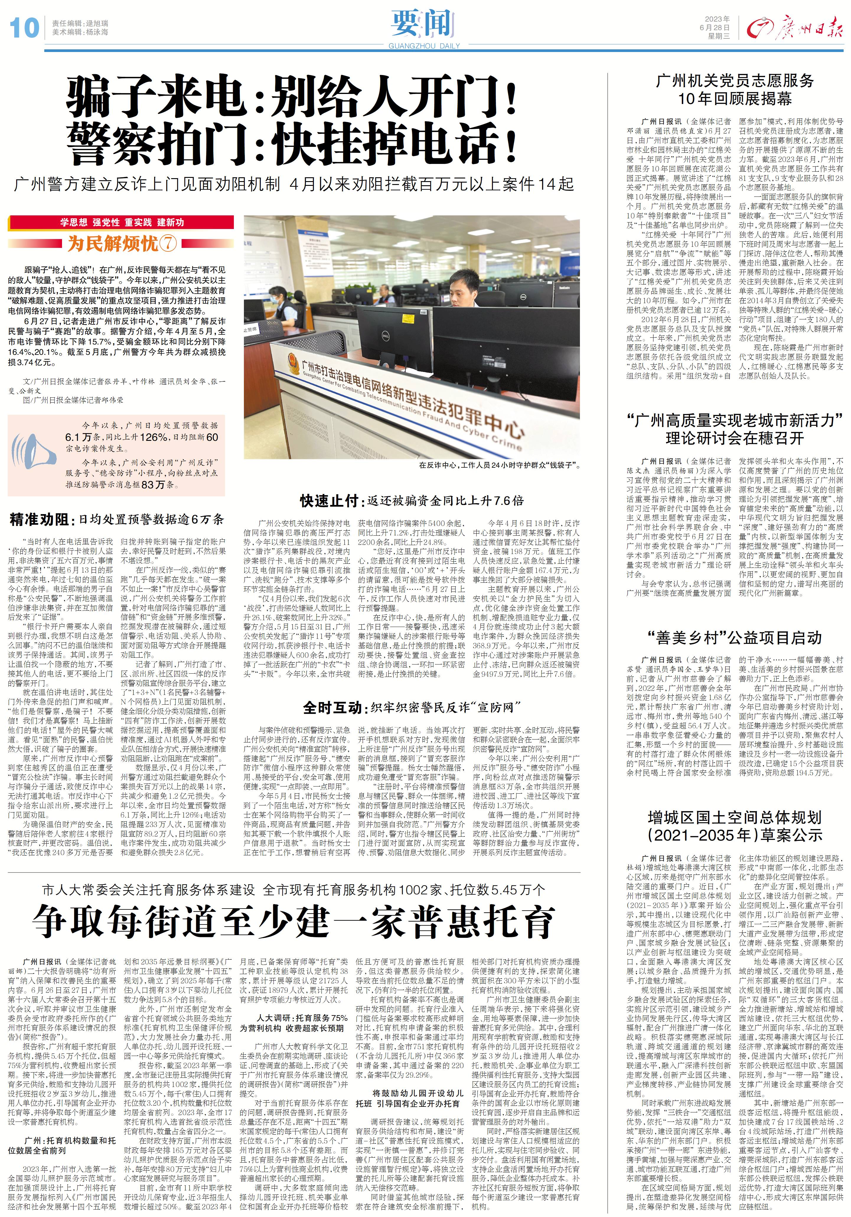 ■今年以来,广州公安利用“广州反诈”服务号、“穗安防诈”小程序,向粉丝点对点推送防骗警示消息框83万条。