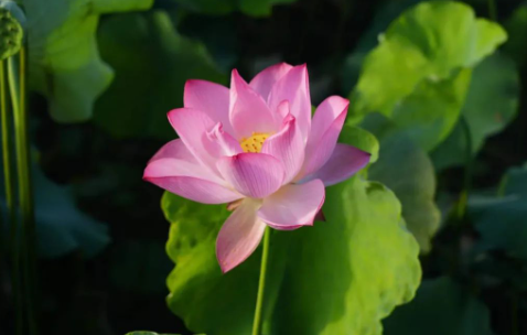 随着微风拂过那一片片荷花瓣,夕阳西下,大地瞬间抹上了一片翠绿。满池的碧水绿叶衬托着,