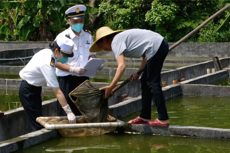 近日,在东莞市横沥罗氏金鱼养殖场,黄埔海关所属常平海关关员正在对3票总价值19.85万元的观赏鱼进行出口前临床检疫,检疫合格后它们将被空运至新加坡。站在一旁的企业负责人罗志良说:“观赏鱼作为鲜活产品,48小时内就要送到客户手上,海关‘云签发’上线后,通关时间缩短了,成活率达到98%以上,为我们节省了不少出口成本。”