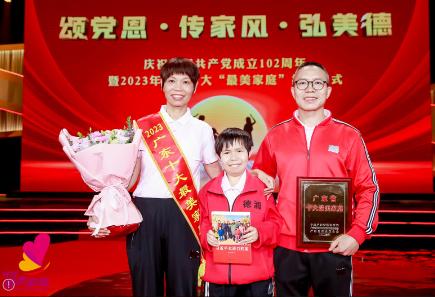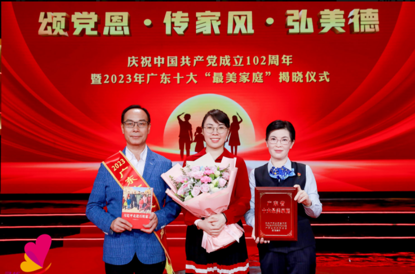 6月28日,由省委宣传部、省文明办、省妇联等主办的“颂党恩·传家风·弘美德”——庆祝中国共产党成立102周年暨2023年广东十大“最美家庭”揭晓仪式在穗举行,来自广州市的吴铭枝家庭入选。