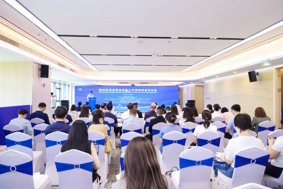 6月28日,南沙区在南沙国际人才港新闻发布厅举办境外职业资格认可清单政策发布会,南沙开发区(自贸区南沙片区)党工委委员、管委会副主任江效民,省、市、区相关政府部门领导,境内外专业协会组织、企业和人才代表共同参加发布活动。