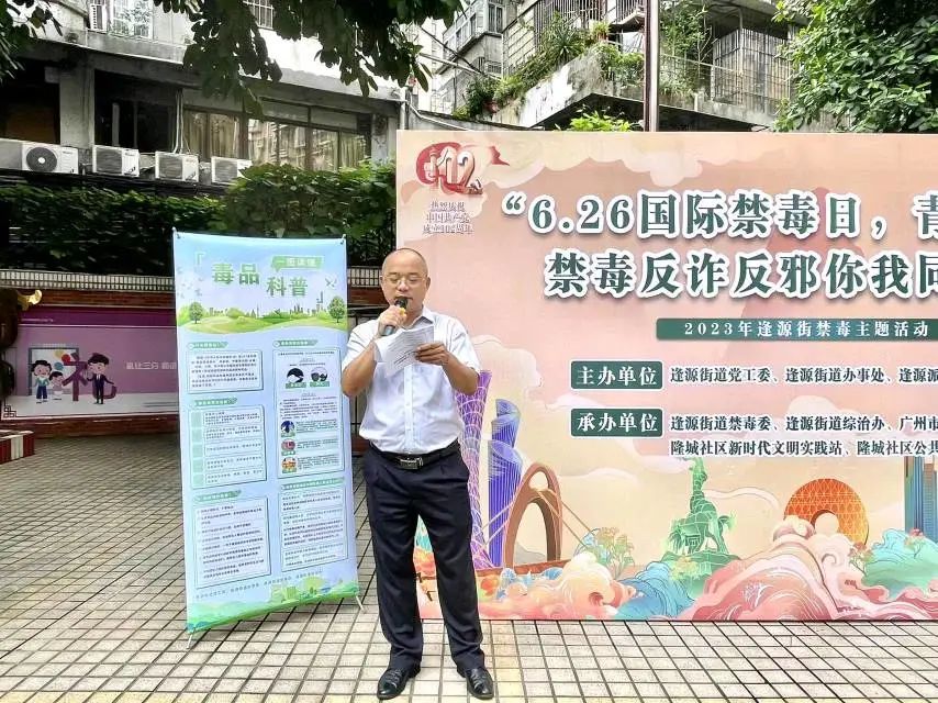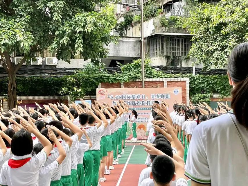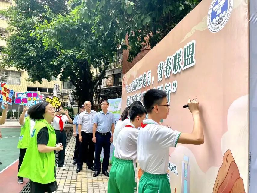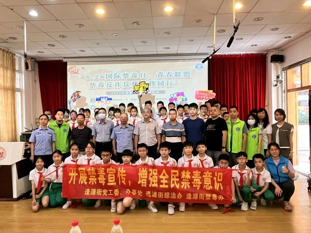 为进一步营造全民禁毒社会氛围,共同守护青少年健康,6月26日,荔湾区逢源街道联合龙津小学,组织开展“6.26国际禁毒日,青春联盟 禁毒反诈反邪你我同行”青少年毒品认知预防教育宣传活动。龙津小学全体师生、有关工作人员等共600余人参加活动。