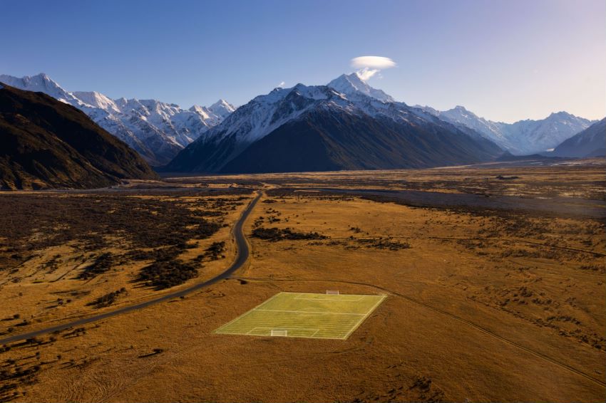 前不久,新西兰旅游局打造的一个绝美的雪山下足球场吸引了不少关注。该足球场长105米、宽68米,坐落于麦肯齐的平原上,位于新西兰最高峰奥拉基库克山前。球场完全由手工建造,没有使用任何重型机械,用来标记沥青线的油漆也保证无毒、耐水,新西兰再添一处新打卡点。