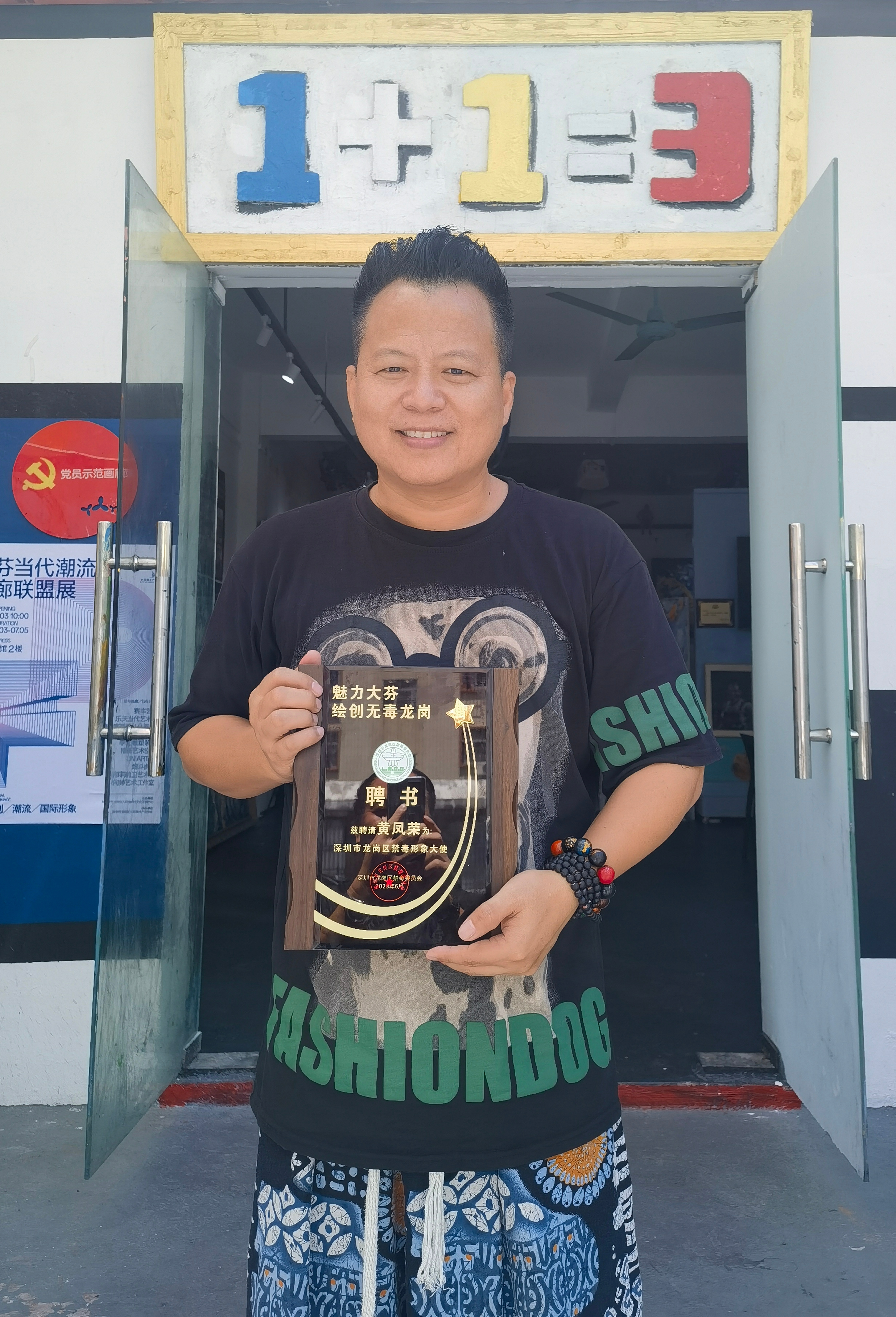 近日,有“中国演画第一人”美誉的深圳大芬画家黄凤荣被龙岗区禁毒委员会聘请为“龙岗区禁毒形象大使”,这是他继去年成为“福建莆田禁毒形象大使”后再次受聘。