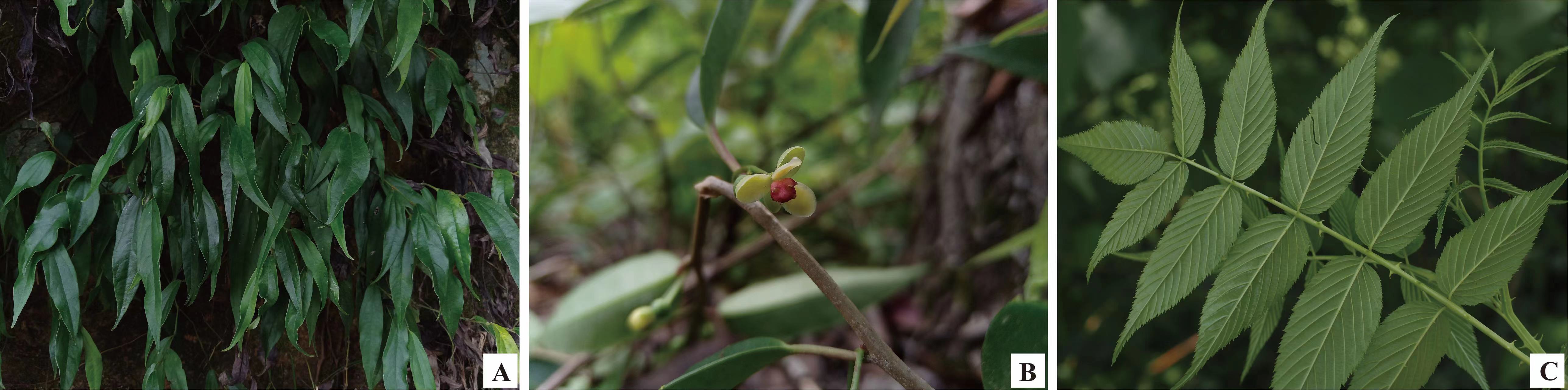 ▲A. 翼梗五味子 ; B. 长柱金丝桃; C. 短柱络石