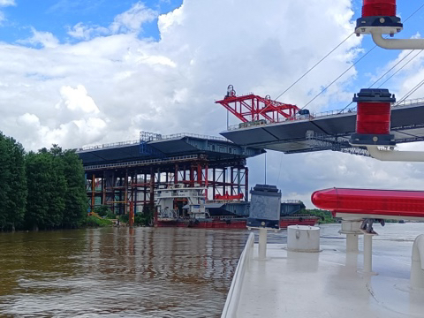 在合龙施工作业期间,中山海事局全程、全力、全面提供水上作业安全保障服务,在小榄水道中山段实施水上临时封航交通管制,为南中高速TJ05合同段横门西特大桥(跨小榄水道)钢箱梁吊装作业做好安全保障。在交通管制期间,中山港口海事处在作业区域上下游各设置两条封航警戒线,执法人员搭乘海巡船现场疏导水域交通,对试图进入施工作业区的过往商船和渔船进行劝阻,指挥协调船舶35艘次在适当位置停泊等候通过或绕行,全程保障作业安全。