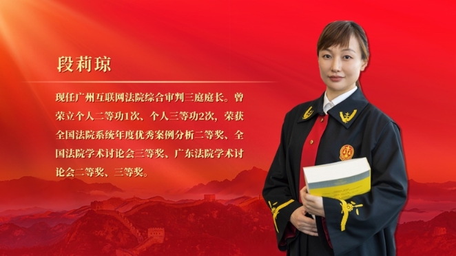 “互联网不是隔着屏幕冷冰冰处理案件,而是用司法的力量去改变每一条规则、塑造每一个人网络行为模式。”自2018年9月广州互联网法院挂牌成立至今已近5年光阴,在与法院共同成长的近2000个日日夜夜,段莉琼牵头建设粤港澳大湾区首个互联网司法智库,制定互联网司法引擎五年规划,推出民营经济十大保护举措,精准对接产业需求;聚焦“网上纠纷网上审”形成超200万字研究报告,全国率先建成150余条在线庭审规程,让在线诉讼有章可循,让当事人“一看就懂、一用就会”......
