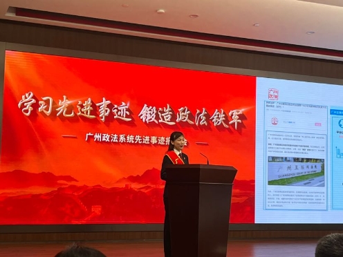 6月29日下午,广州市举办政法系统先进事迹报告会,5位先进代表分别登上市委会议厅讲台,分享他们在不同工作岗位上发生的感人故事,讲述自己立足本职坚守初心的奋斗经历。以下是广州互联网法院综合审判三庭庭长段莉琼的奋斗故事。