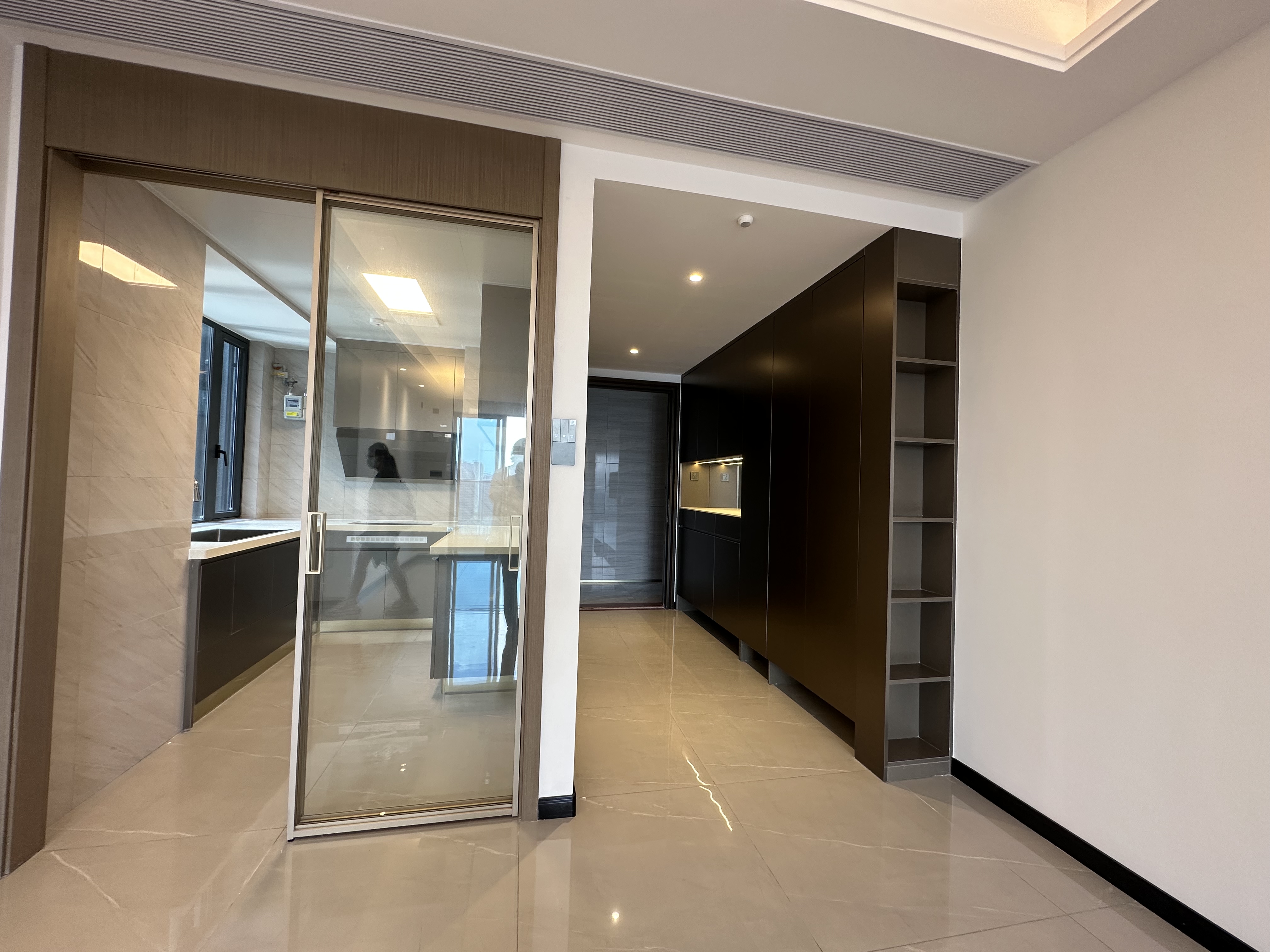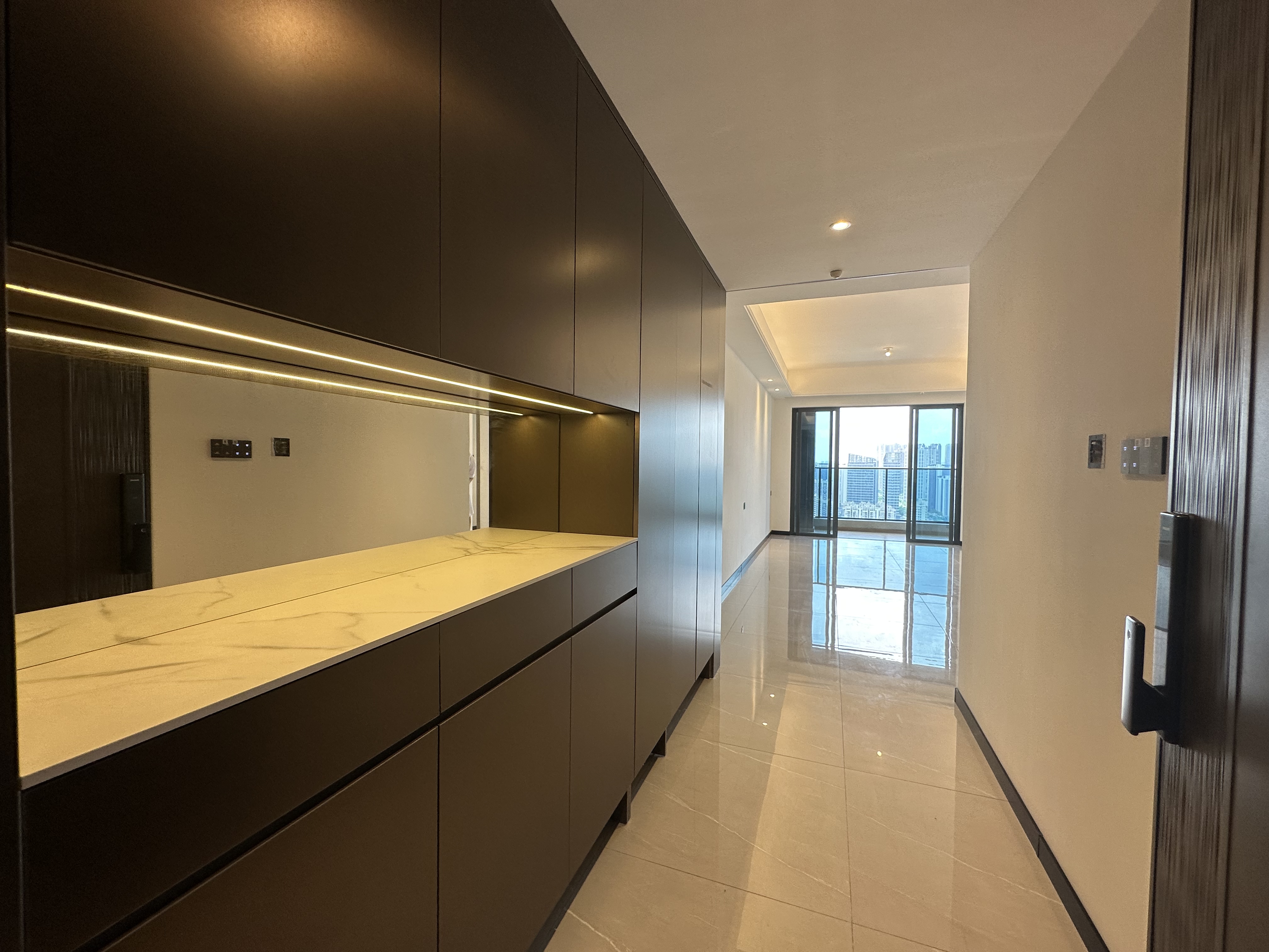 记者在现场看到,灯湖胜悦苑的园林比较精致,设计了大型儿童活动区、趣味廊架,还有篮球场等运动场地。记者还受邀请参观了住宅。住宅为精装交付,智能门禁、玄关鞋柜、新风系统、客厅天花、智能马桶等一应俱全,甚至预留了智能窗帘的电位,其交付标准高于市场主流精装产品。