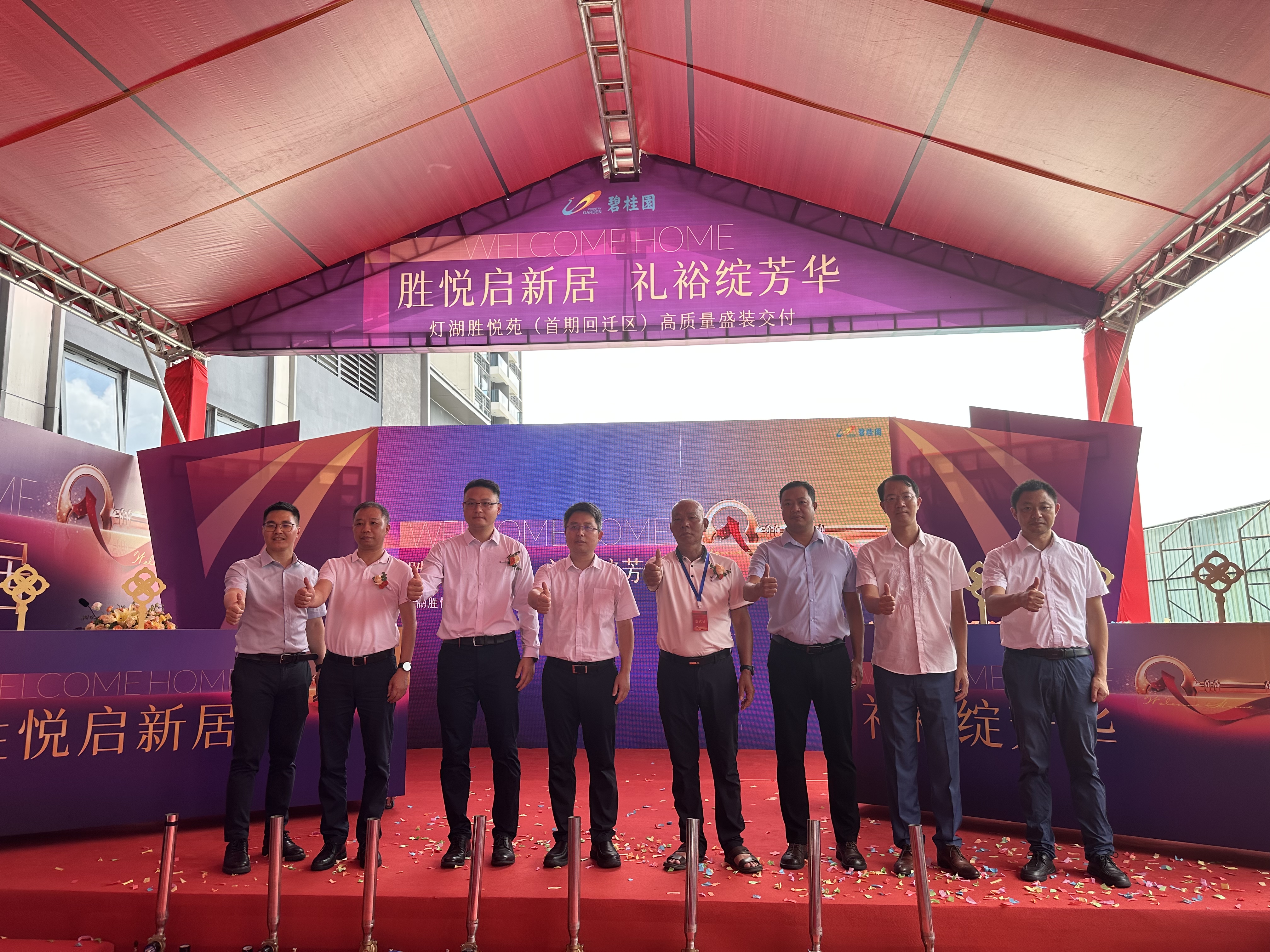 6月30日一大早,永胜村的村民们拖家带口地来到灯湖胜悦苑外,等待着灯湖胜悦苑的正式交付。当碧桂园集团江中区域党委书记周睿代表碧桂园将灯湖胜悦苑的钥匙交到永胜经济社社长林灿新手上时,现场响起了雷鸣般的掌声。