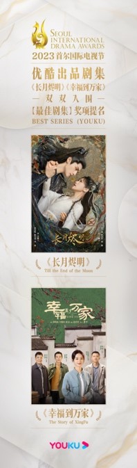 6月28日,2023首尔国际电视节公布入围名单,由优酷出品的剧集《长月烬明》《幸福到万家》从来自44个国家和地区的344部作品中脱颖而出,双双荣获“最佳剧集”提名,优酷成为唯一以2部作品入围“最佳剧集”奖项的长视频平台,精品内容出海再创佳绩。