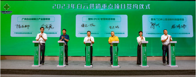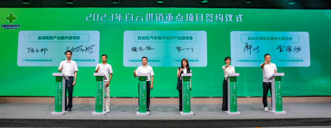 签约仪式上,上述白云区供销社下属三家全资子公司分别与广东安圜绿天然现代农业有限公司等6家企业进行签约,落地湴湖蔬菜产业园、低碳绿色建材产业园、上胜创意科技园等6个重点项目,总投资额近18亿元,项目涉及现代农业、再生资源、资产物业运营等多个领域。