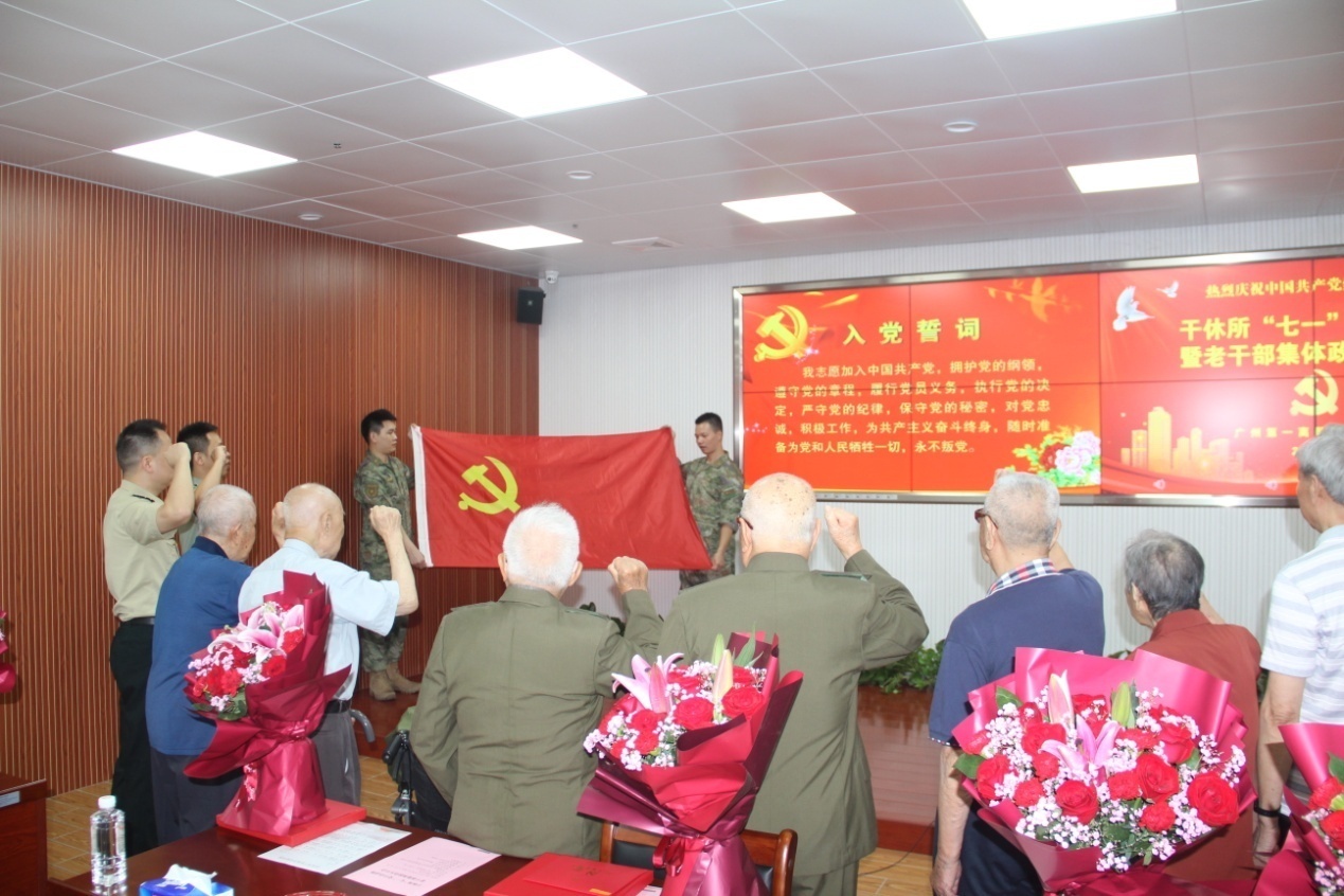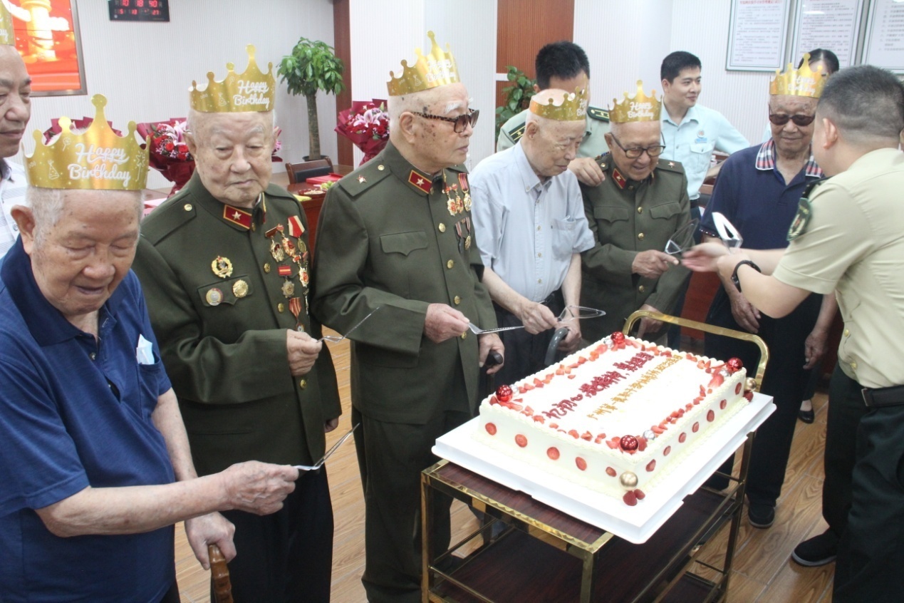 在“七一”来临之际,广东省军区广州第一离职干部休养所举办“七一”主题党日活动暨老干部集体政治生日会。该所老干部年龄最高103岁,平均年龄95岁,最高党龄78岁,平均党龄73岁。当天,他们欢聚一堂,共同庆祝中国共产党成立102周年以及集体过政治生日。