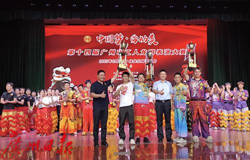 据介绍,广州市工人龙狮表演大赛,自1986年起至今已成功举办了十四届,深受全市职工的喜爱,每年参与的企业和职工人数不断攀升,是获得社会广泛赞同的品牌赛事。2022年4月,由广州工人醒狮协会申报的“狮舞(广州醒狮)”于被广东省人民政府公布列入广东省第八批省级非物质文化遗产代表性项目名录。