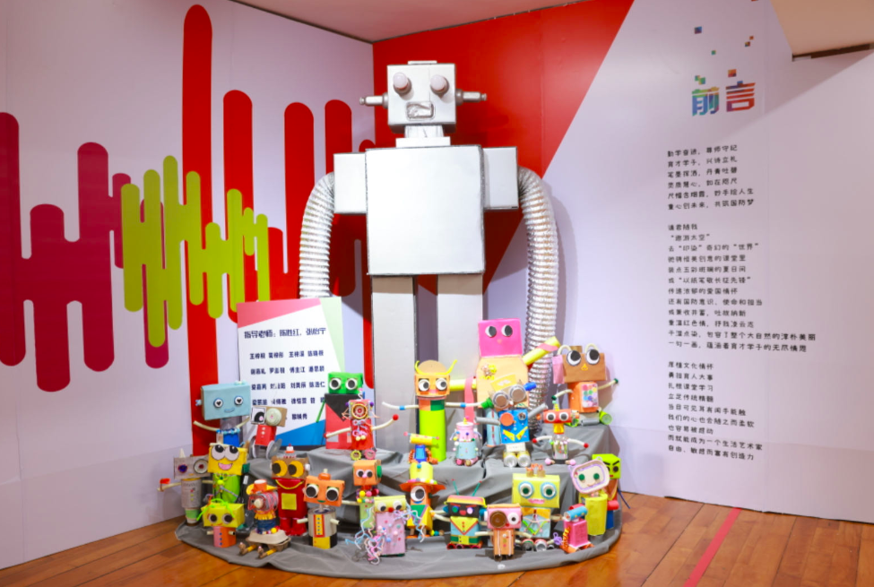 当日,育才学校体育馆化身氛围感十足的艺术展馆,富有创意的美术作品让人目不暇接。在体育馆里,有一飞冲天的火箭;有灵动敏锐的机器人;有精美的纸飞机、小纸船……它们都承载着育才学子的梦想和愿望。