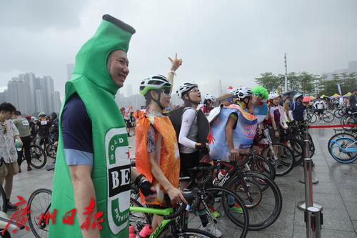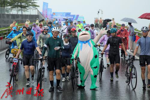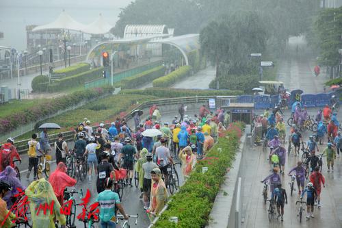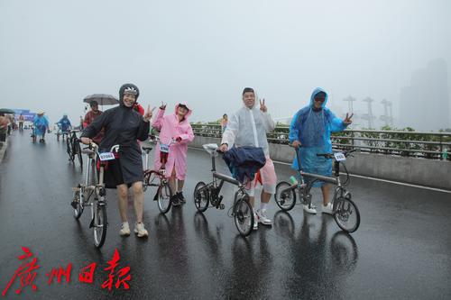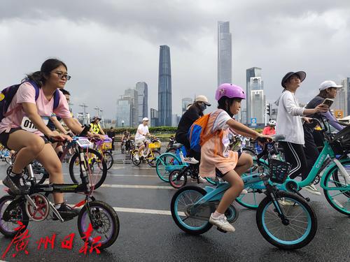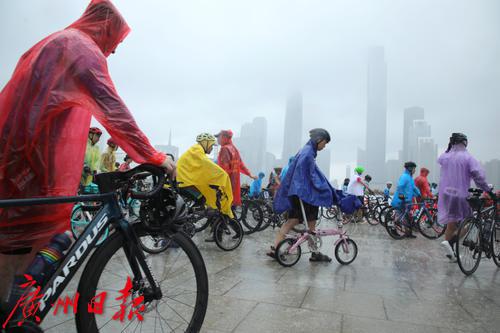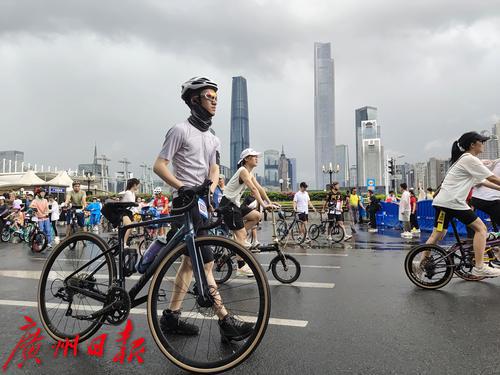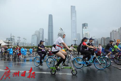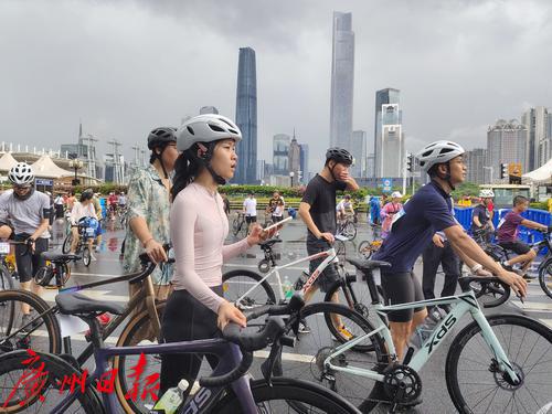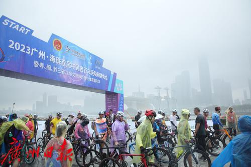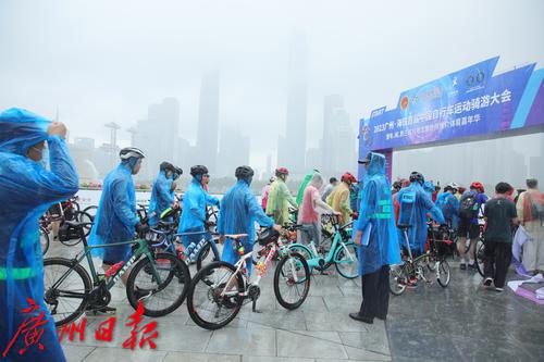 7月2日上午8时,盛夏的广州突然下了一场暴雨,但正在参加在2023广州·海珠首届中国自行车运动骑游大会的骑手们却热情不减,冒着大雨纷纷出发,场面感人。同时在广州塔拉开帷幕的还有“潮玩海珠 乐在骑中”粤、闽、黔三省八地文旅协作推介体育嘉年华。据悉,本次骑游大会是首个在广州城市中央进行全程道路封闭的骑游活动,也是中国国内首次由政府举办这样的活动。参赛骑手从广州地标小蛮腰出发,沿珠江沿岸骑行,途经会展公园、广交会展馆、保利国际广场、水博苑、保利天幕广场、广交会,最后返回到广州塔下完成挑战。本次骑游大会致力于打造城市公路自行车活动爆款IP(自行车版的“广马”),引领市民群众潮玩新风尚。12.4公里的骑行路线将海珠区珠江沿岸的秀美风景串珠成链,骑行爱好者在欣赏一江两岸风景的同时悠闲自在地完成挑战。据悉,本次活动三天时间就完成了骑手的招募工作。在约3000名骑手中,年龄最大的70岁,最小的8岁,其中有100名家庭组成了家庭和谐骑行团也参与其中。骑游活动给予参与者前所未有的骑行体验,现场汇成一片欢乐的海洋;一些骑手花样百出,骑着公路车、山地车、折叠车、复古自行车等各类个性化自行车,就像一场户外自行车博览会,赚足了眼球,他们不仅张扬自己的个性,也让众多骑行爱好者和观众眼前一亮。