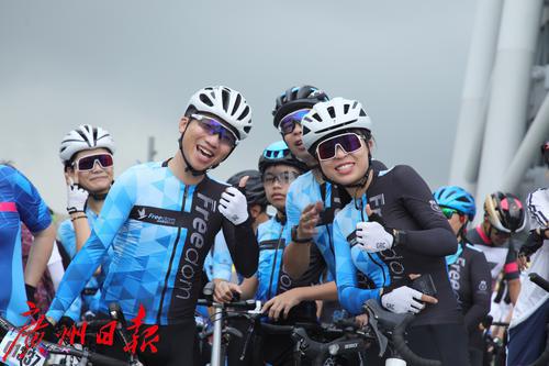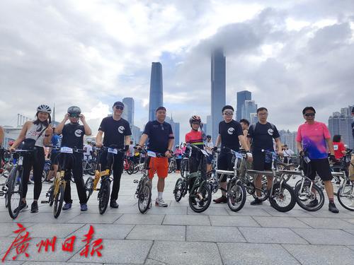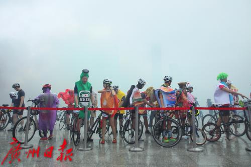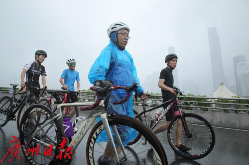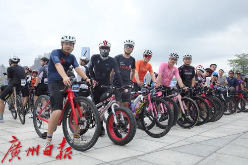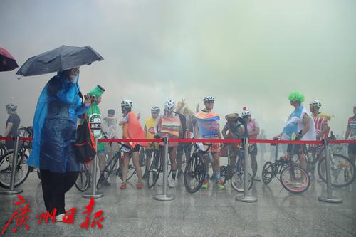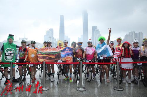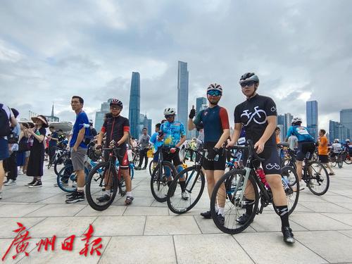 出发前,骑手们在广州塔二楼平台集中
