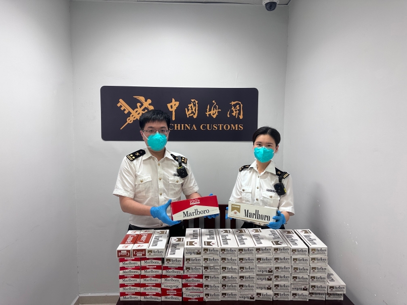 广州海关关员在进境旅检渠道查获旅客超量携带进境卷烟