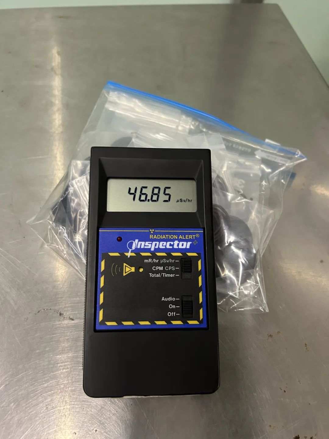 近日,沈阳海关所属沈阳桃仙机场海关在监管进境航班时,发现一名旅客通过海关固定式核辐射监测门时引发报警,现场关员对其拦截后进行复查。经查,该旅客携带的15条“保健石”项链核辐射超标,辐射量达到46.85μSV/h,超现场本底值468倍,经放射性核素分析,该保健石中含钡-133,钍-232两种放射性核素,其中钍-232被列入世界卫生组织国际癌症研究机构1类致癌物清单。