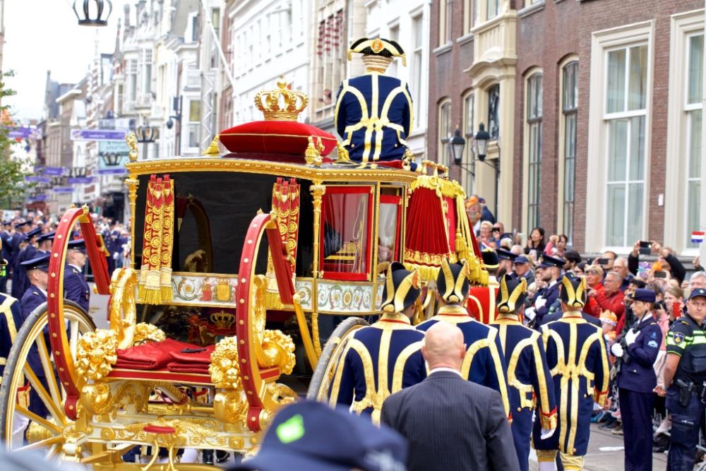 2019年9月17日,在荷兰海牙,荷兰国王威廉-亚历山大和王后马克西玛乘坐“黄金马车”巡游。新华社发(西尔维娅·莱德雷尔摄)