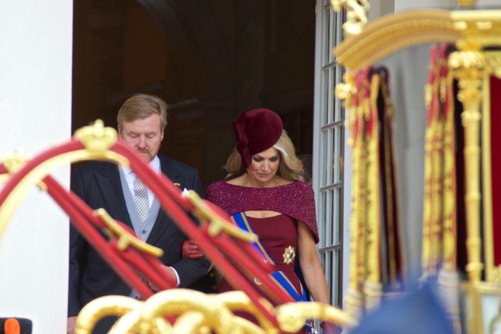 2019年9月17日,在荷兰海牙,荷兰国王威廉-亚历山大(左)和王后马克西玛前往议会宫骑士厅。新华社发(西尔维娅·莱德雷尔摄)