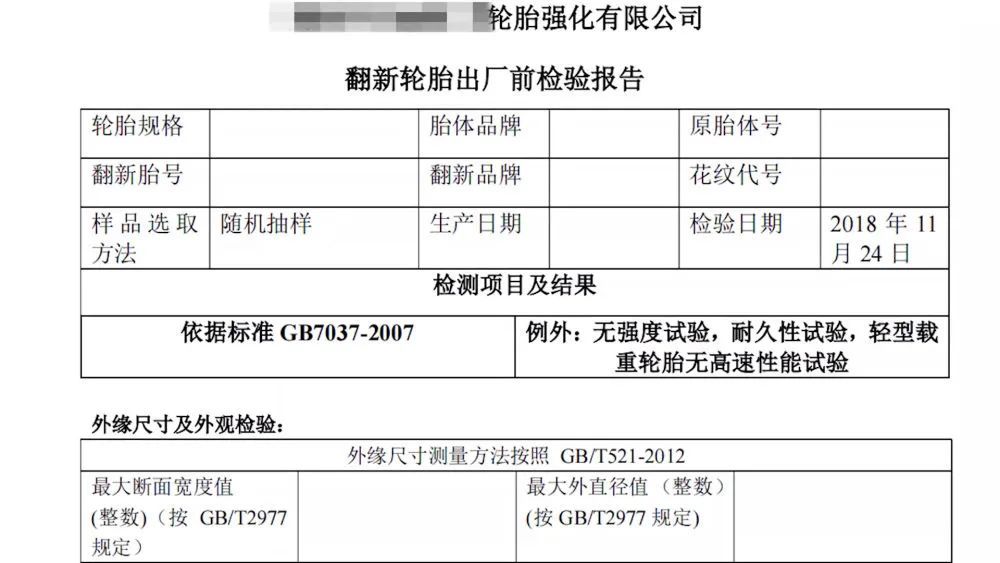 此外,根据国家标准《载重汽车翻新轮胎(GB7037-2007)》,翻新轮胎必须标示“RETREAD”或“翻新”字样,还需标志翻新次数,翻新批号。
