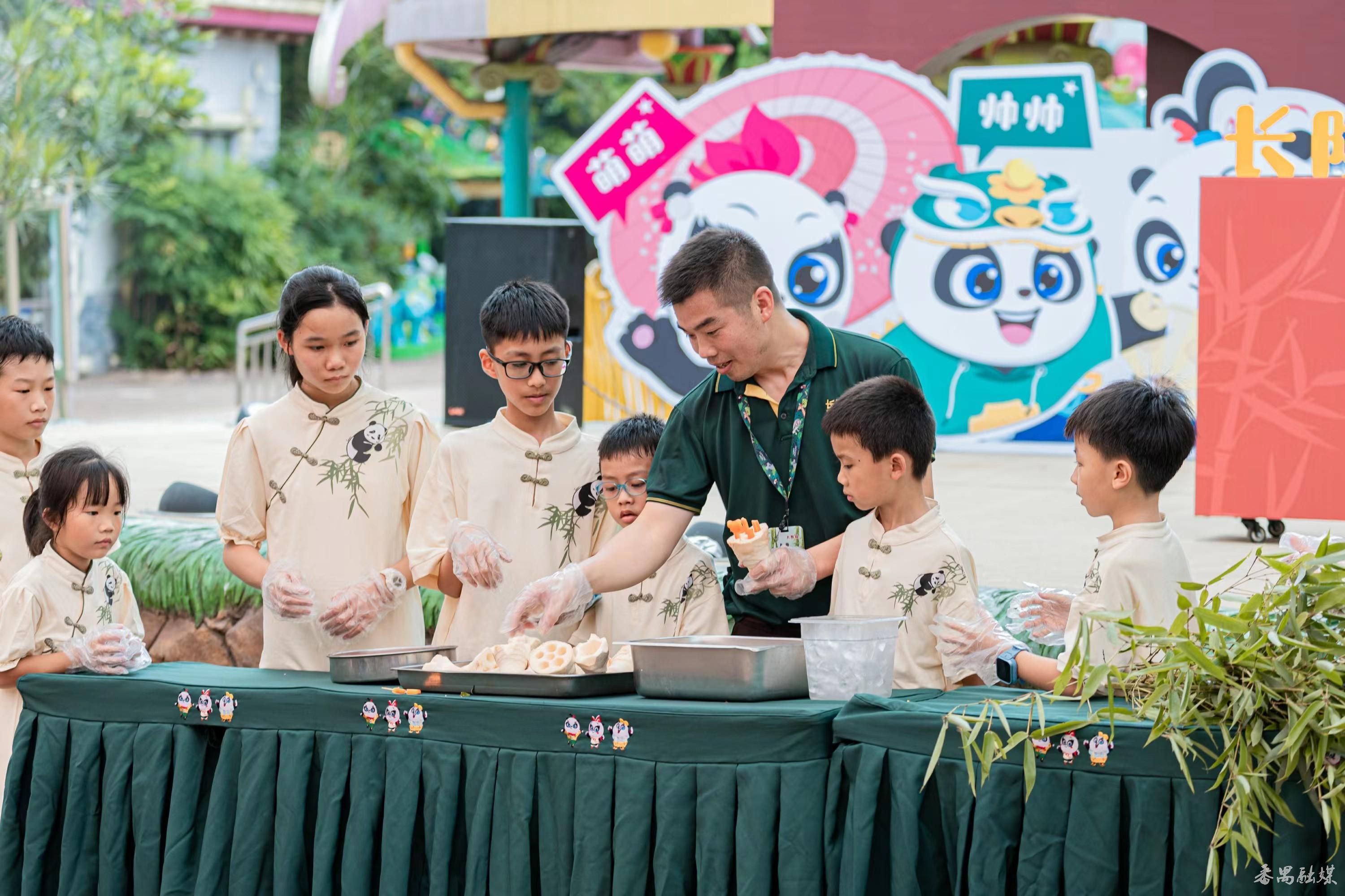 启动日当天上午,长隆还特别邀请农民工子弟“小候鸟”一起参加 “超级大熊猫节”精彩初体验,“小候鸟”公益家庭参与熊猫酒店巡游、专列发车仪式、乘坐小火车游览动物世界东非草原,还参与了学习制作大熊猫食物环节。在启动仪式现场,“小候鸟”们在保育员的指导下,亲手制作了“老广”大熊猫的下午茶。