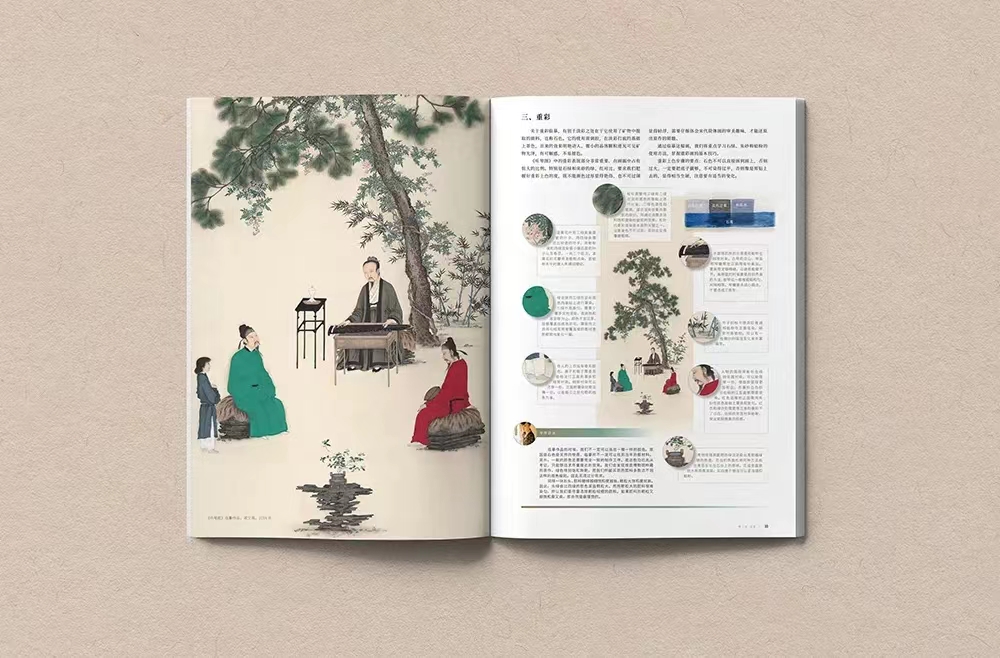 广东青年画家周文瑶创作的《〈听琴图〉临摹笔记》,以北宋名画《听琴图》为研究对象,从读画、颜料、绢及辅材工具,到白描、渲染、成画等都完整地呈现了古画临摹的重点研习方法。深入探索还原工笔画的精致细节,笔记式全过程讲解与规范临摹。内容详实全面,讲解精到,300多幅图片演示细致入微,突出临墓技法步骤的实操与体验性,融入多年的教学实践与心得各环节的难点与问题均有对照解答。