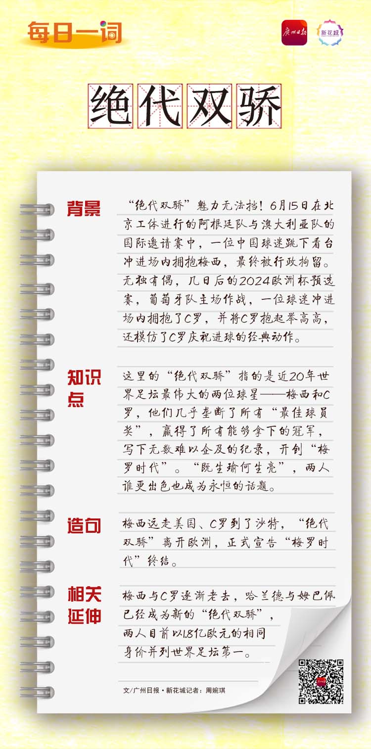 这里的“绝代双骄”指的是近20年世界足坛最伟大的两位球星——梅西和C罗,他们几乎垄断了所有“最佳球员奖”,赢得了所有能够拿下的冠军,写下无数难以企及的纪录,开创“梅罗时代”。