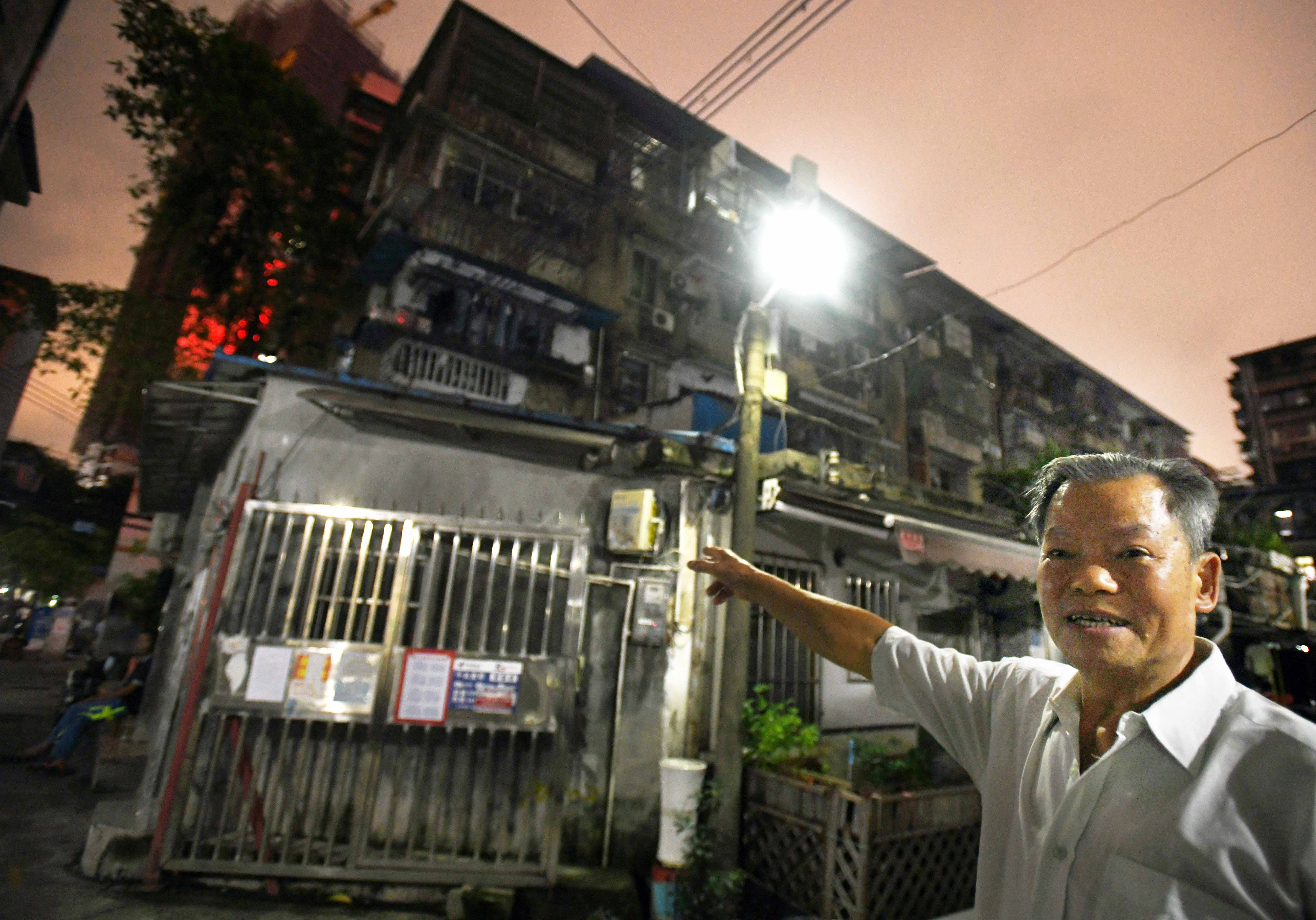 “特别报道,今天基建新村安装路灯,结束一街、三街没有路灯的情况。”路灯亮起,黄健成到楼下拍视频“现场直播”,过往只有居民自家零星小灯的内巷,如今被连排大灯照得明明白白、清清楚楚,仿佛路也宽了。街坊们终于告别摸黑的历史,迎来亮堂堂的回家路。